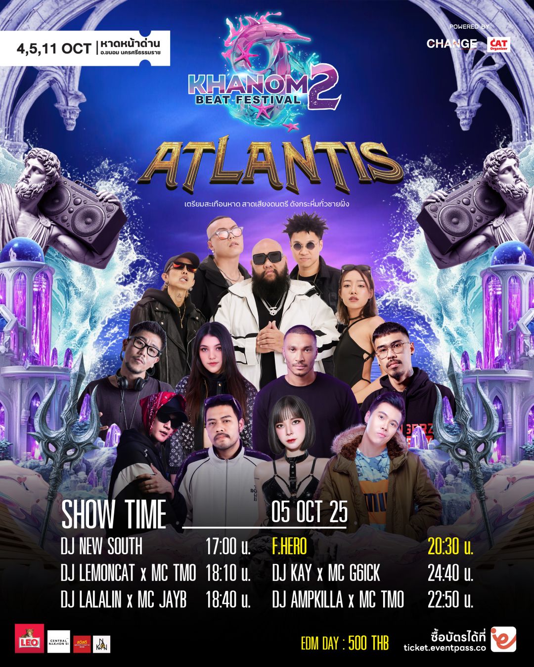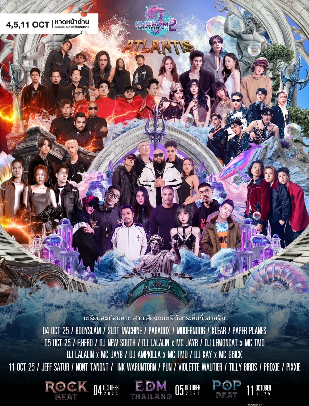 สภาอุตสาหกรรมท่องเที่ยวจังหวัดนครศรีธรรมราช โดยคุณ อลงกต วัชรสินธุ์ ประธานสภาอุตสาหกรรมท่องเที่ยวจังหวัดนครศรีธรรมราช ไฟเขียวให้ CAT Organizer (แคท ออแกไนเซอร์) และบริษัท เช้นจ์ 98 จำกัด ผู้เชี่ยวชาญด้านการจัดงานอีเวนต์ขนาดใหญ่ พร้อมการสนับสนุนอย่างแข็งขันจาก บริษัท ปตท.จำกัด (มหาชน) ที่เล็งเห็นถึงศักยภาพของพื้นที่ชุมชนทะเลอ่าวไทย ร่วมใจกันระตุ้นเศรฐกิจและการท่องเที่ยวอำเภอขนอม จังหวัดนครศรีธรรมราช เพื่อเป็นส่วนหนึ่งในการขับเคลื่อนเศรษฐกิจท้องถิ่นของจังหวัด นับเป็นอีกหนึ่งงานเทศกาลดนตรีที่ยิ่งใหญ่ ที่ชาวนครศรีธรรมราชและนักท่องเที่ยวจากทั่วประเทศ จะได้สัมผัสกับบรรยากาศความสนุกแบบเต็มอิ่ม สะเทือนหาด สาดเสียงดนตรีดังกระหึ่มชายฝั่ง ที่สุดในภาคใต้ฝั่งอ่าวไทย กับ Khanom Beat Festival 2 (ขนอมบีทเฟสติวัล ครั้งที่ 2) มหกรรมดนตรีและศิลปะริมชายหาดสุดยิ่งใหญ่ ที่พร้อมกลับมาสร้างความคึกคักอลังการณ์อีกครั้ง โดยในปีนี้ได้มีการขยายเวลาจัดงานเพิ่มขึ้นแบบจุก ๆ จัดหนัก จัดเต็มความบันเทิงกัน ในวันที่ 4-11 ตุลาคมนี้ โดยมีศิลปินมากมายที่จะมาร่วมสร้างความบันเทิง อาทิ บอดี้สแลม, สล็อตแมชชีน, พาราด็อกซ์, โมเดิร์นด็อก, เคลียร์, เปเปอร์เพลนส์, ฟักกลิ้งฮีโร่, เจฟ ชาเตอร์, นนน์ ธนนท์, อิ้งค์ วรันธร, ปัน สรณวรรธ, วี วิโอเลต, ทิลลี่เบิร์ดส์, พร็อกซี่, พิกซี่ และเหล่าดีเจ-เอ็มซี อีกมากมาย ที่ต่างเตรียมพร้อมไปมอบความสุขสุดประทับใจในครั้งนี้