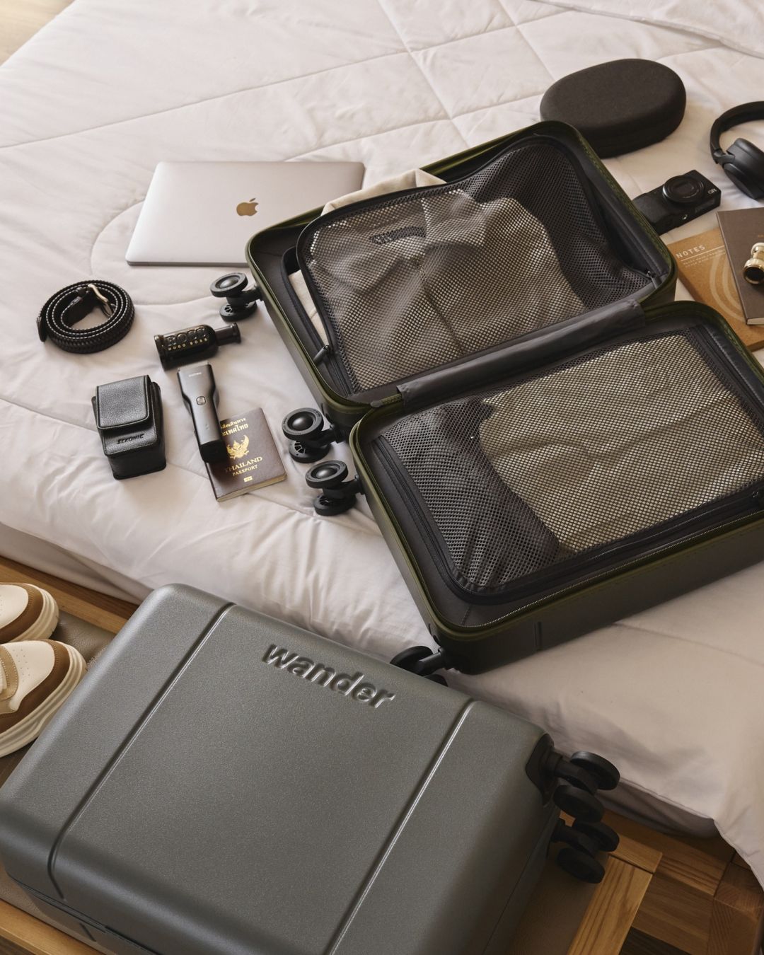 Wander Global ขอแนะนำกระเป๋าเดินทาง 2 รุ่นไฮไลท์ ได้แก่ Wander Open Front Luggage และ Wander Air - Super Light Luggage ซึ่งถูกออกแบบด้วยแนวคิด “การเดินทางที่เคลื่อนไหวไปกับชีวิตจริง” ตอกย้ำการเป็นแบรนด์ที่นักเดินทางยุคใหม่เลือกสรร ด้วยเอกลักษณ์ของดีไซน์มินิมอล การใช้งานที่ตอบโจทย์ และความอเนกประสงค์ ที่ผสานพลังงานของชีวิตคนเมืองเข้ากับแพสชันในการเดินทางทั่วโลกได้อย่างลงตัว