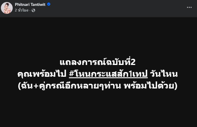 ล่าสุด เม พรีมายา ก็ได้ออกมาโพสต์ข้อความอีกครั้งผ่านเฟซบุ๊ก หลังจากที่คลินิกคู่กรณีออกแถลงการณ์ กล่าวว่า “แถลงการณ์ฉบับที่ 2 คุณพร้อมไป #โหนกระแสสัก1 เทป วันไหน (ฉัน+คู่กรณีอีกหลาย ๆ ท่าน พร้อมไปด้วย)” พร้อมคอมเมนต์ใต้โพสต์ว่า “#ชี้แจงแบบไม่ให้ถาม #แถลงแบบปิดคอมเมนต์ อือ โอเค แหละ”