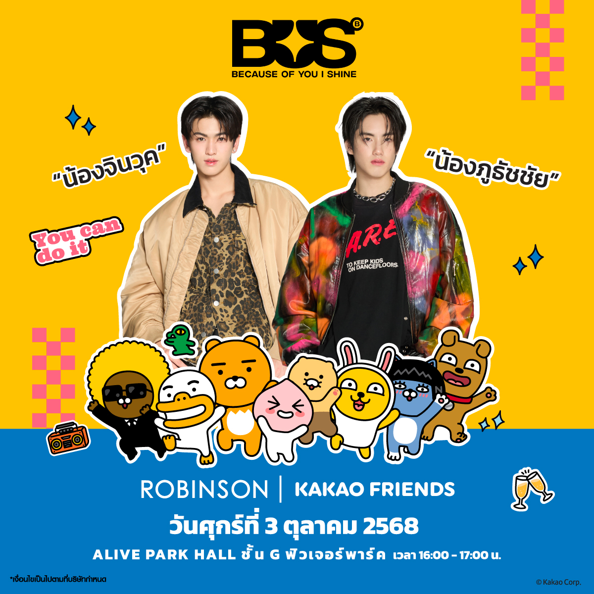 3 ต.ค. 68: พบกับ ภู ธัชชัย และ จินวุค สมาชิกจากวง BUS (because of you i shine) ที่บูธ KAKAO FRIENDS