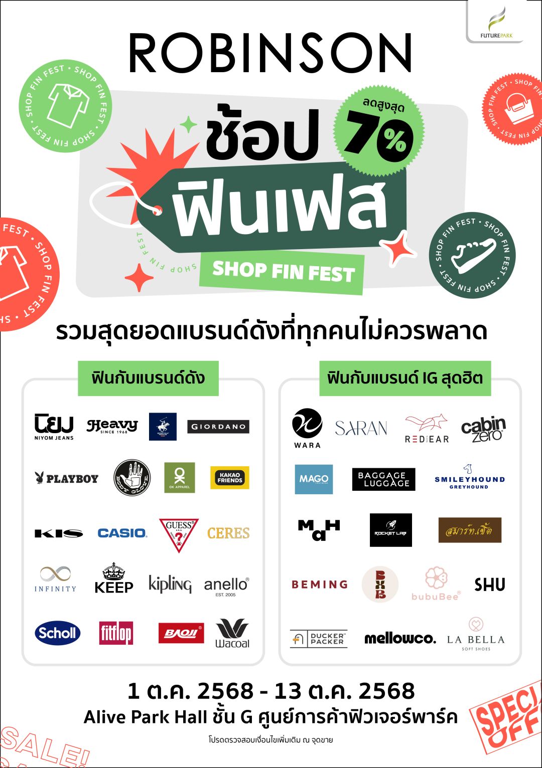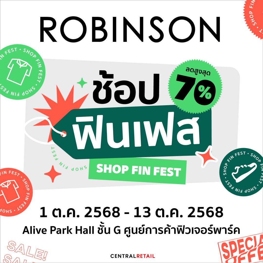 มาฟินไปด้วยกันที่งาน “Robinson ช้อป ฟิน เฟส” วันนี้ถึง 13 ต.ค. 68 ที่ ALIVE PARK HALL ชั้น G ศูนย์การค้าฟิวเจอร์พาร์ค