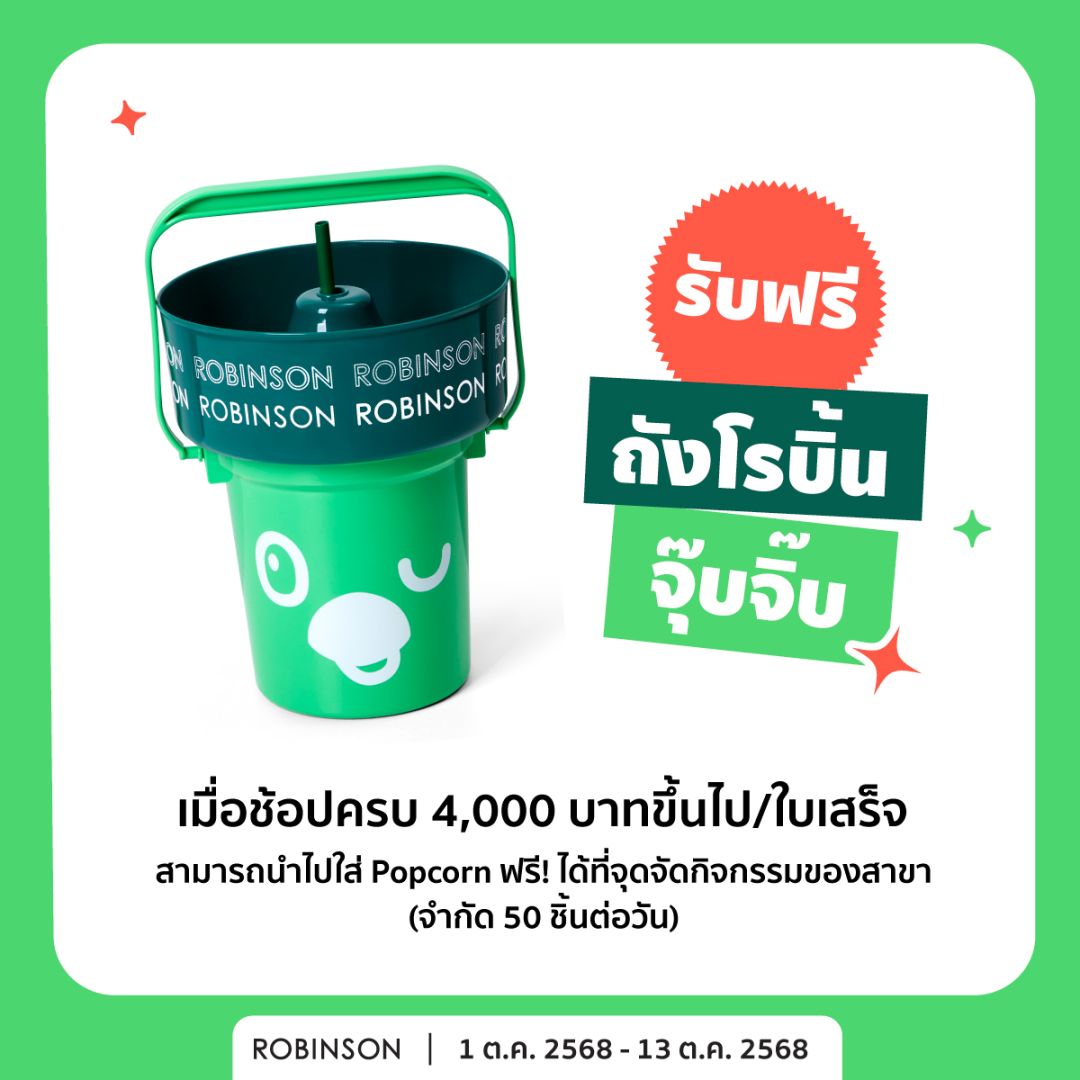 รับฟรี “ถังโรบิน จุ๊บจิ๊บ” คอลเลคชันพิเศษ พร้อมป๊อปคอร์น มูลค่า 399 บาท เมื่อช้อปครบ 4,000 บาทขึ้นไป / ใบเสร็จ และแลกรับไอติมนกโรบิ้น ฟรี! (จำนวนจำกัด) เมื่อช้อปครบ 500 บาทขึ้นไป / ใบเสร็จ พร้อมโปรโมชันช้อปครบรับของ พรีเมียม / สิทธิ์แลกซื้อสุดคุ้มมากมาย