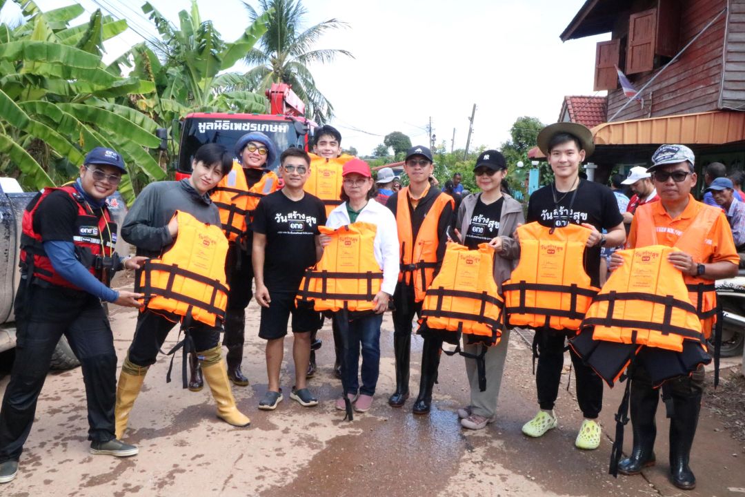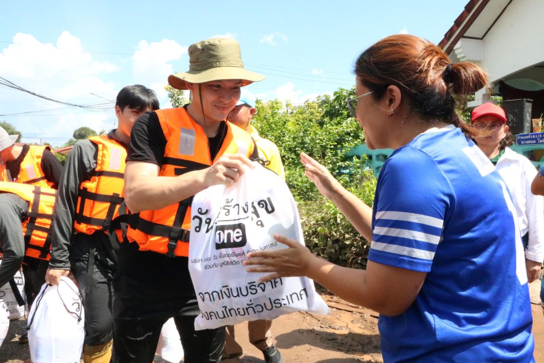 นำทีมโดย คุณเดียว วรตั้งตระกูล ประธานเจ้าหน้าที่ฝ่ายปฏิบัติการช่องวัน31 และรักษาการผู้อำนวยการสำนักข่าววันนิวส์ พร้อมด้วย ก้อง-วิทยา นักแสดงหนุ่มจากละคร ทายาทหมายเลข และสองศิลปินจาก The star อาร์ตติส-ธนากรณ์, ปังปอนด์-สุริยกุล รวมถึง ยศ-ณัฏฐ์ศรุต พิธีกรข่าวจากสำนักข่าววันนิวส์ ที่เดินทางไปมอบถุงยังชีพจำนวนกว่า 500 ชุด และจัดซื้ออุปกรณ์ที่จำเป็นต่อการดำรงชีพ ซึ่งเป็นน้ำใจที่ประชาชนทั่วประเทศบริจาคเข้ามาผ่านโครงการวันสร้างสุข นำไปมอบให้กับชาวบ้านในตำบลทองแสนขันที่ส่วนใหญ่ยังอาศัยอยู่บ้านเรือนเพราะเป็นห่วงทรัพย์สินภายในบ้าน ก่อนจะพูดคุยให้กำลังใจบรรดาผู้สูงอายุที่ได้หนีเอาชีวิตรอดจากน้ำท่วมมายังศูนย์อพยพผู้ประสบภัยในเทศบาลตำบลทองแสนขัน ซึ่งไม่สามารถกลับไปพักอาศัยบ้านได้หลังน้ำลดแล้วเพราะบ้านเสียหายอย่างหนัก และยังได้ร่วมแรงร่วมใจจัดทำข้าวกล่องวันสร้างสุขพร้อมมอบเงินสนับสนุนจำนวน 100,000 บาท ให้กับครัวสนามของ มูลนิธิเพชรเกษม จัดทำข้าวกล่องและแจกจ่ายให้กับชาวบ้านในพื้นที่ประสบภัย ทั้งนี้โครงการ “วันสร้างสุข” ขอส่งกำลังใจให้แก่ผู้ประสบภัยน้ำท่วมทั่วประเทศ ขอให้ผ่านวิกฤตนี้ไปด้วยกัน