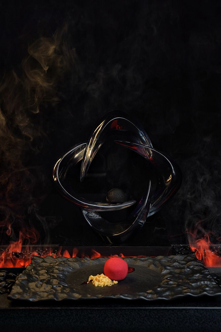 สำหรับ "Ritual of Shadows" คือการเดินทางที่เริ่มต้นด้วย Floating Black Moon และ Yuzu Infusion เปรียบเหมือนก้าวแรกสู่โลกมืด ก่อนพาไปพบกับเมนูสุดตื่นตาอย่าง Ocean & Earth Harmony, Eye of the Dragon, Kuro Kani Obsidian จนถึงเมนคอร์สที่ลูกค้าเลือกได้ระหว่าง Japanese A5 Wagyu, Australian Lamb Ribs หรือ Canadian Lobster และปิดท้ายด้วย Dessert Trilogy ที่ทั้งงดงามและลึกลับในคราวเดียว