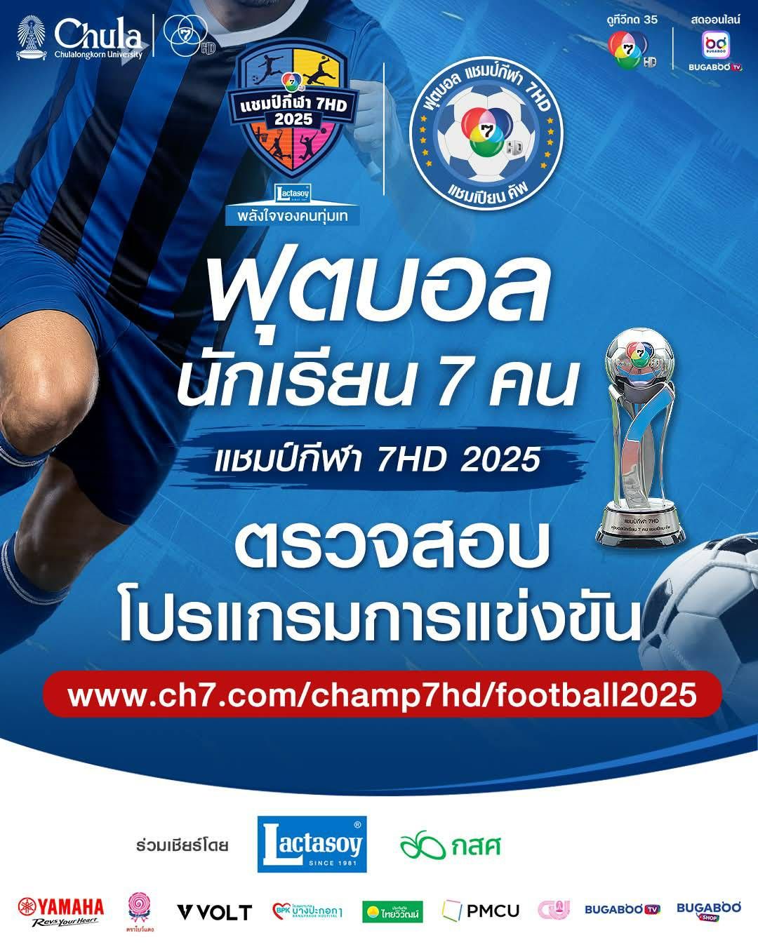 พร้อมฟาดแข้ง “SPORTS LIFE” อุ่นเครื่องความมันก่อนเปิดศึก “ฟุตบอลนักเรียน 7 คน แชมป์กีฬา 7HD แชมเปียน คัพ 2025” ชวนเหล่าผู้บรรยายตัวตึง “แอดเตเต้-แอดอาท-แอดต้น” วิเคราะห์เกมลูกหนังขาสั้นปีนี้ เจอกัน อังคารที่ 7 ต.ค.นี้ สตาร์ทความมันแบบอันลิมิต สำหรับศึกลูกหนังขาสั้น ฟุตบอลนักเรียน 7 คน แชมป์กีฬา 7HD แชมเปียน คัพ 2025 โดย ช่อง 7HD จับมือ จุฬาลงกรณ์มหาวิทยาลัย และ กรมพลศึกษา เปิดสนามดวลแข้งกันสุดมัน โดยมีทีมฟุตบอลที่เข้าร่วมชิงชัยกว่า 503 ทีม และถูกแบ่งสายการแข่งขันออกเป็น 16 สาย ปีนี้จัดใหญ่เปิดสนามมาตรฐานรองรับการแข่งขันถึง 4 สนามใจกลางเมือง ได้แก่ สนามเทพหัสดิน, สนามกีฬาจุฬาลงกรณ์มหาวิทยาลัย, สนามจินดารักษ์ และสนามศุภชลาศัย และเปิดศึกนัดแรกรอบคัดเลือก (Preliminary Round) ระหว่างวันที่ 6-12 ตุลาคม 2568 ให้ดวลแข้งพร้อมกันถึง 3 สนาม ได้แก่ สนามเทพหัสดิน, สนามกีฬาจุฬาลงกรณ์มหาวิทยาลัย และ สนามจินดารักษ์