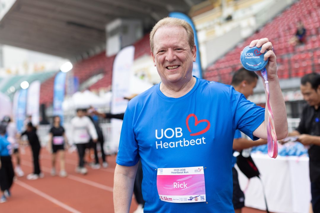 "ครั้งนี้มาในฐานะกองเชียร์ มาเป็นกำลังใจให้นักวิ่งทุกคน มาเติมพลัง มาเติมเต็มประสบการณ์งานวิ่งให้กับตัวผมด้วย ส่วนครั้งหน้าถ้ามีโอกาสจะมาร่วมวิ่งไปกับทุกๆ คน นักวิ่งทุกคนเต็มที่มากๆ ไม่ว่าจะเป็นผู้บริหาร พนักงานของธนาคารที่พาครอบครัวมาร่วมด้วย มากันจากทั่วประเทศ ลูกค้าและพันธมิตรทางธุรกิจมาร่วมวิ่งเพื่อสุขภาวะที่ดีและการให้คืนสู่สังคมกันกว่า 2,500 คน รายได้จากการระดมทุนจะนำไปสนับสนุนห้องเรียนดิจิทัลในโครงการ UOB My Digital Space (MDS) เพื่อลดความเหลื่อมล้ำทางการศึกษาให้น้องๆ ในพื้นที่ห่างไกล ขอเป็นอีกหนึ่งเสียงสนับสนุนให้ธนาคารยูโอบี ประเทศไทย สานต่อกิจกรรม UOB Heartbeat Run ทุกๆ ปีอย่างต่อเนื่องต่อไปนะครับ"