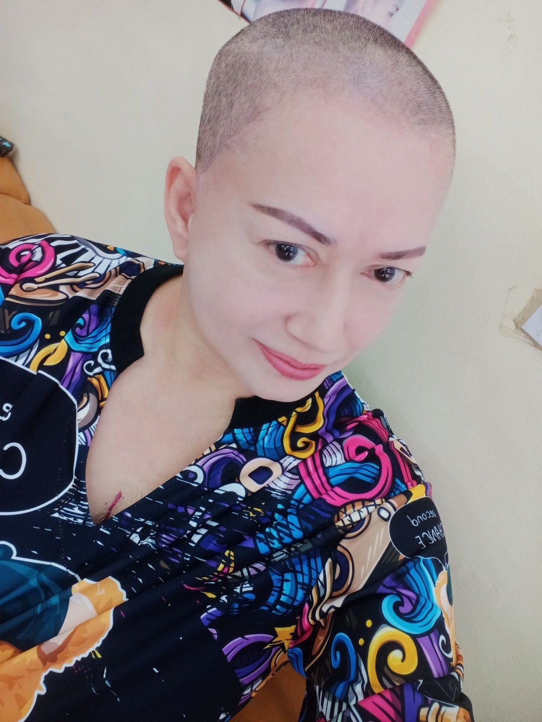 " ถึงเวลา ผมช้าน...ก็ต้องจากกันสักพักนะ ขอเวลาไปรักษาตัวก่อน แล้วเธอก็ต้องกลับมายาว ให้ฉันเหมือนเดิมนะจ๊ะ. #ก็สวยไปอีกแบบเนอะ ขอบคุณคุณเก่งที่โกนเป็นเพื่อนนร้า ขอบคุณคุณไก่ที่โกนฟรีไม่คิดตังด้วยนะจ๊ะ #ยิ้มสู้แล้วไปต่อนะ #มะระมะเร็งมะเส็งบรรยาย "