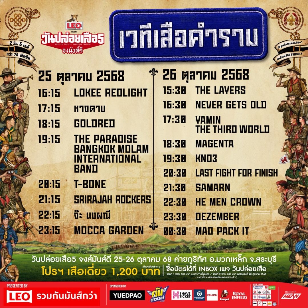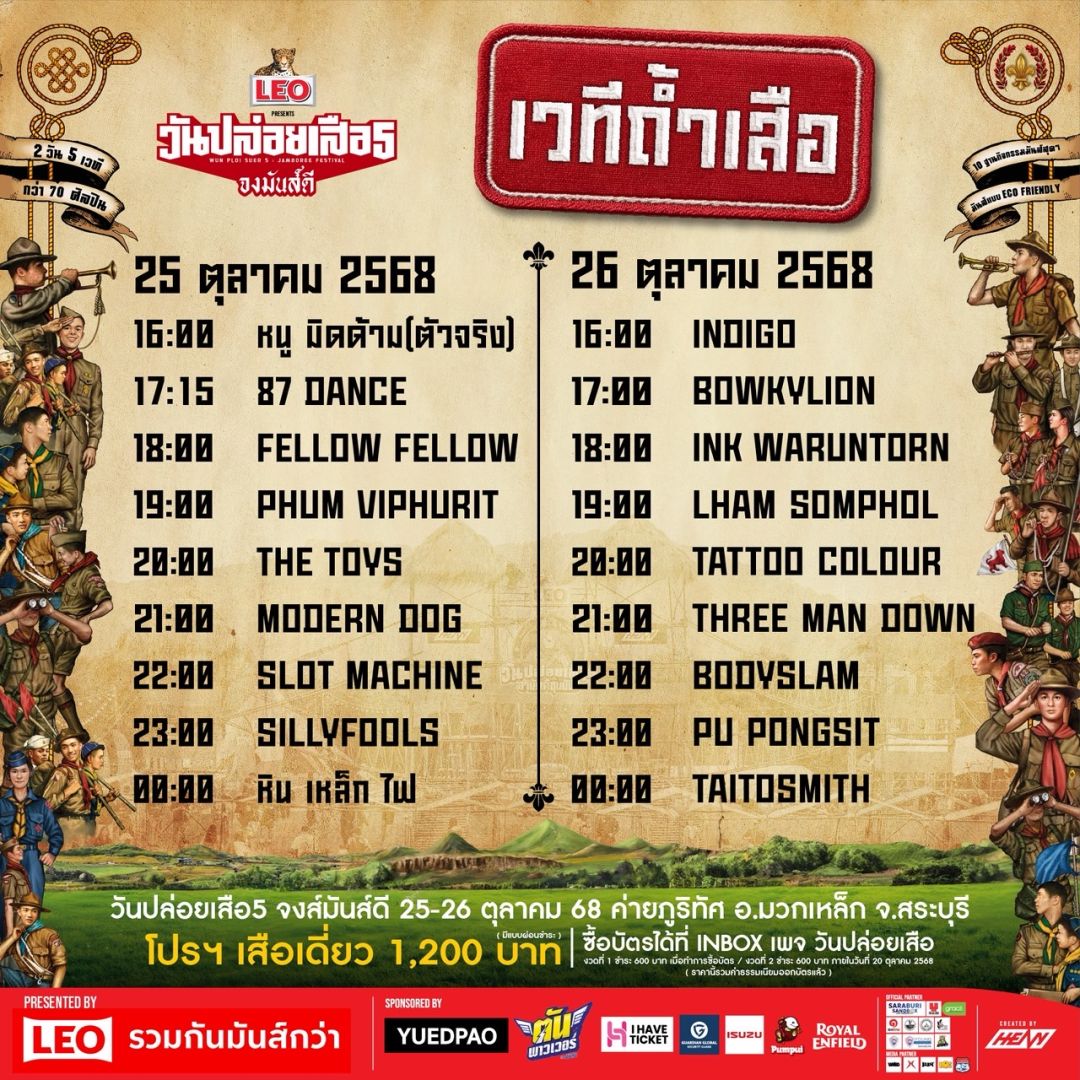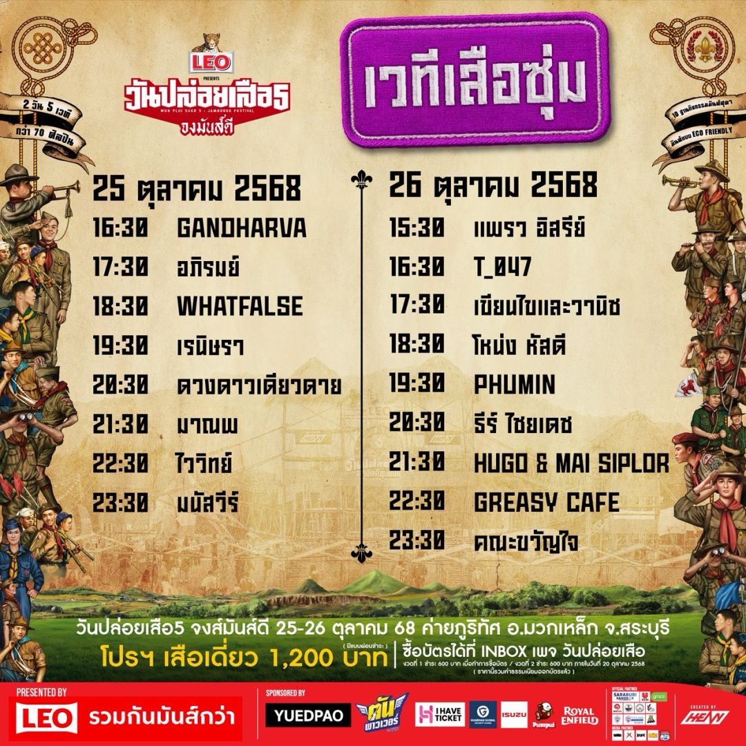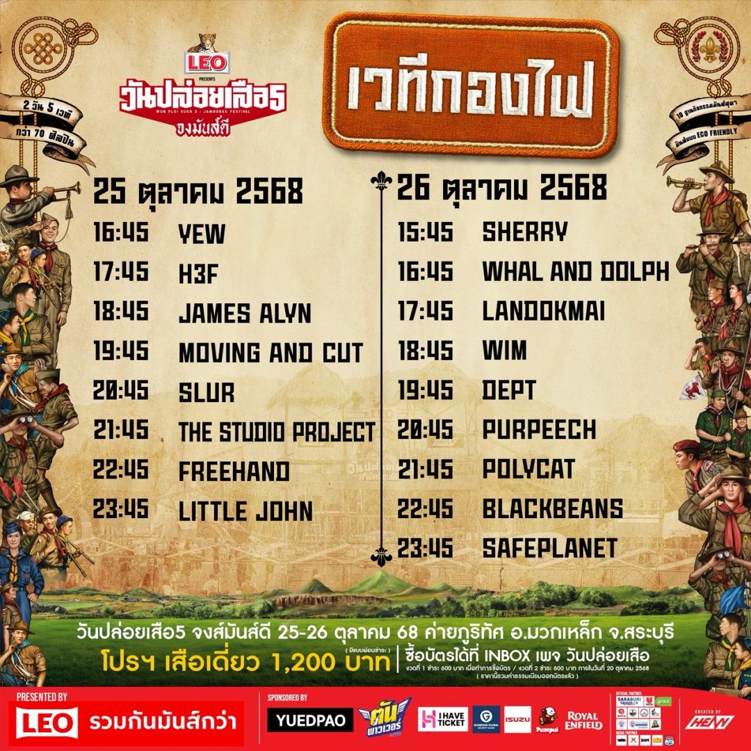 LEO Presents วันปล่อยเสือปี 5 จงมันส์ดี เราเชื่อว่า “ความมันส์” กับ “ความยั่งยืน” อยู่ร่วมกันได้จึงออกแบบเทศกาลวันปล่อยเสือ ให้สนุกสุดมันส์ แบบ Eco Friendly ให้คูลแบบคลีน ๆ 25–26 ตุลาคม 68 ค่ายภูริทัศ ต.หนองย่างเสือ อ.มวกเหล็ก จ.สระบุรี