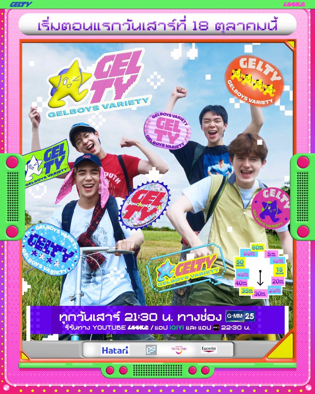 เตรียมฟิตเช็ก แพ็กกระเป๋า ออกเดินทางไปพร้อม ๆ กันได้ในรายการ “GELTY (GELBOYS VARIETY)” เริ่มตอนแรกวันเสาร์ที่ 18 ตุลาคมนี้ ทุกวันเสาร์ 21:30 น. ทางช่อง GMM25 รีรันความสนุกอีกครั้งทาง YouTube LOOKE / iQIYI / oneD เวลา 22:30 น.