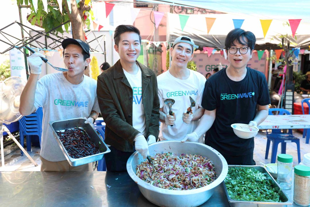 เดินหน้าสร้างสรรค์สิ่งดีดีต่อเนื่อง ล่าสุดเปิดตัว GREEN WAVE อร่อย...ไม่ลืมโลก ที่ กรีนเวฟ ร่วมกับ กรุงเทพมหานคร พร้อมด้วยพาร์ทเนอร์คนสำคัญอีกหลายส่วน มาช่วยกันรณรงค์ให้ความรู้ และให้ทุกคนเห็นความสำคัญของ “อาหารส่วนเกิน” และ “ขยะรีไซเคิล” นำมาใช้ให้เกิดประโยชน์สูงสุด ลดการเกิด Food waste อย่างยั่งยืน เพื่อช่วยโลก ช่วยน้อง ให้อิ่มท้องไปพร้อมกัน โดยวันนี้ ดีเจอั๋น ภูวนาท / ดีเจเป้ วิศวะ / ดีเจพี่เฟี้ยต ธัชนนท์ และดีเจโบ ธนากร มาร่วมกิจกรรมแสนอบอุ่นเปิดโครงการกันที่ ชุมชนบ้านมั่นคงสวนพลู เริ่มจากรับอาหารส่วนเกินจาก SOS THAILAND มาปรุงเป็นอาหารมื้อใหม่ได้ถึง 3 เมนูสุดอร่อยทั้ง ยำไก่แซ่บ / ต้มยำหัวปลาแซลมอน และหมูหวาน มอบเป็นอาหารกลางวันให้ศูนย์พัฒนาเด็กชุมชนบ้านมั่นคงสวนพลู ตามด้วยขนมโดนัท100 ชิ้น จากวันเกิดครบรอบ 34 ปีของกรีนเวฟ เรียกได้ว่าส่งต่อความรัก เติมรอยยิ้มให้กับคนในชุมชน ได้อย่าง แสนอบอุ่น