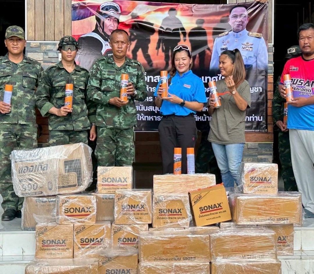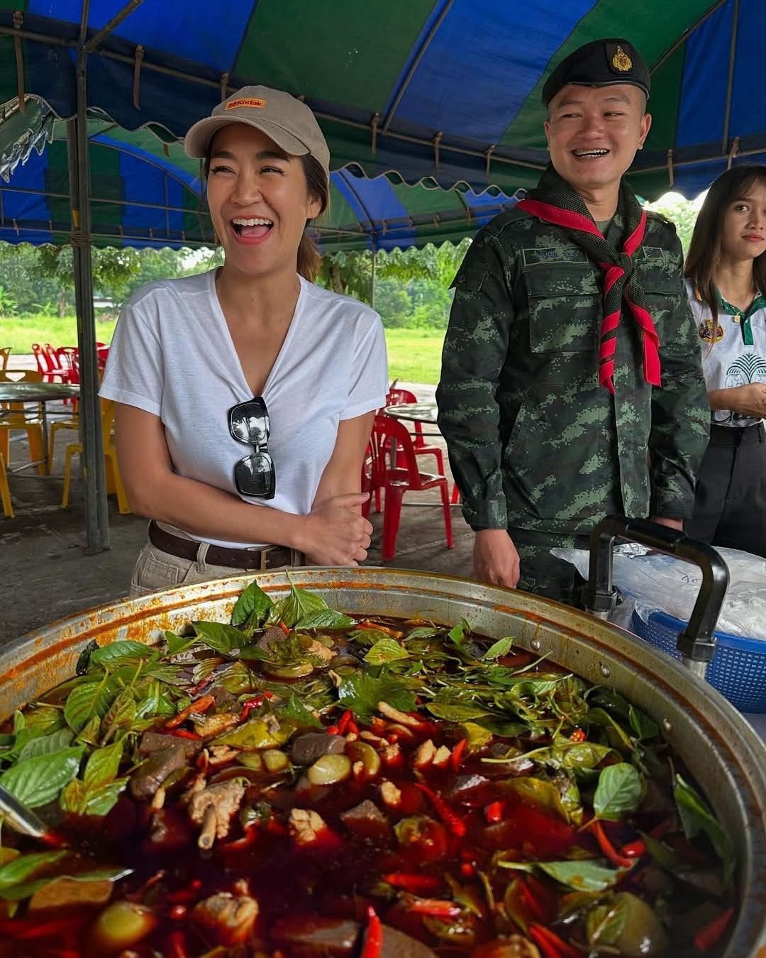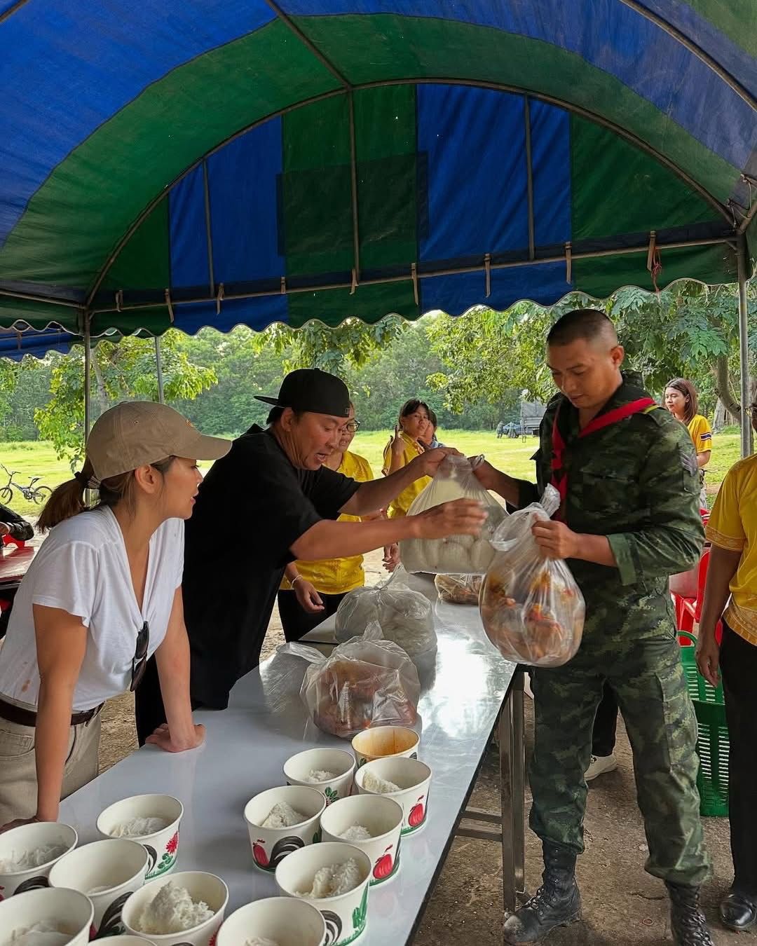 “อันนั้นคือเราทำอยู่แล้วเลย เพราะมันเป็นฝั่งของพี่เปิ้ล อย่างที่เราช่วยเรื่องชายแดนก็ตลอดอยู่แล้ว และเพิ่งไปช่วยน้ำท่วมที่อยุธยา มันคือหน้าที่ของเราที่จะต้องทำ ไม่ใช่ว่าหน้าที่รับผิดชอบนะ แต่เราอยากลงมือทำ เพราะในเรื่องของน้ำท่วมหน้าพี่เปิ้ลเขาลอยมาอยู่แล้ว ในส่วนของชายแดนทหารก็ไปมอบถังน้ำ 1200 ถัง เพื่อกระจายไปที่ชายแดน มันก็เป็นประโยชน์และได้ใช้จริง”