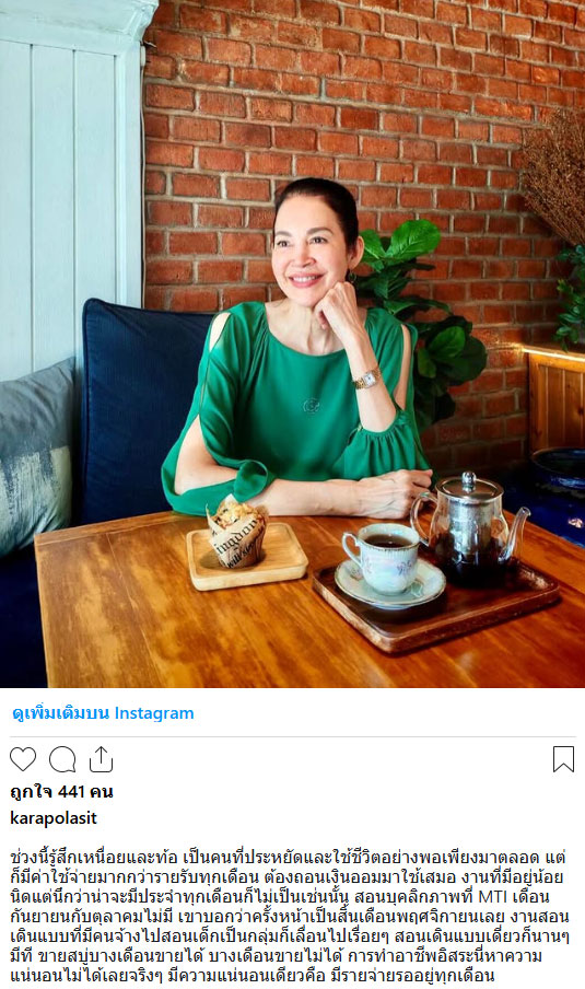 โดย คาร่า พลสิทธิ์ ได้โพสต์ข้อความว่า"ช่วงนี้รู้สึกเหนื่อยและท้อ เป็นคนที่ประหยัดและใช้ชีวิตอย่างพอเพียงมาตลอด แต่ก็มีค่าใช้จ่ายมากกว่ารายรับทุกเดือน ต้องถอนเงินออมมาใช้เสมอ งานที่มีอยู่น้อยนิดแต่นึกว่าน่าจะมีประจำทุกเดือนก็ไม่เป็นเช่นนั้น