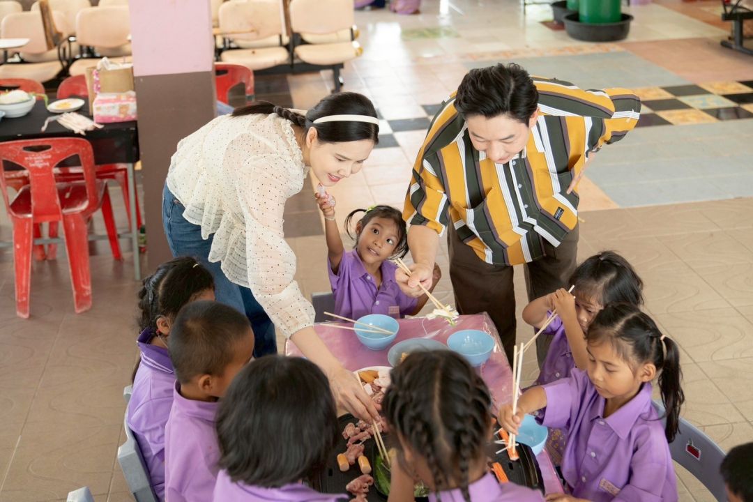 ก่อนมา เราให้คุณครูช่วยถามน้อง ๆ ว่า “อยากทานอะไรเป็นพิเศษไหม?” คุณครูตอบมาว่า…น้อง ๆ ไม่เคยกินหมูกะทะ พิซซ่า เฟรนช์ฟราย เลยเราเลยจัดเต็มให้น้อง ๆ ตามรีเควสท์ แถมไอศครีมไปอีก ตลอดเวลาที่ได้ใช้เวลาราวมกับน้อง ๆ สัมผัสได้เลยว่าน้อง ๆ ดีใจและตื่นเต้นกันสุด ๆ เติมแล้วเติมอีก