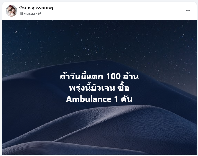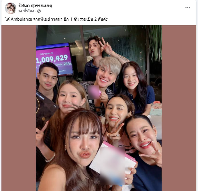 ความสำเร็จครั้งนี้มาพร้อมกับการทำตามสัญญาที่เจนนี่ได้ประกาศไว้ก่อนหน้านี้ว่า "ถ้าวันนี้แตก 100 ล้าน พรุ่งนี้ยิวเจน ซื้อ Ambulance 1 คัน" ซึ่งเมื่อยอดขายบรรลุเป้าหมาย เจนนี่ก็ได้ดำเนินการตามสัญญาทันที และล่าสุดได้โพสต์ข้อความว่าได้รับรถพยาบาลเพิ่มอีก 1 คัน จากการร่วมสมทบของนักธุรกิจสาว "พี่เมย์ วาสนา" ทำให้ยอดรวมของรถพยาบาลที่ได้ในครั้งนี้เป็น 2 คัน