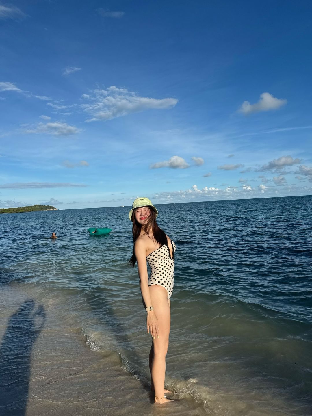 งานนี้สาวมายด์ไม่ลืมหยิบชุดว่ายน้ำสุดปังมาใส่เพิ่มดีกรีความร้อนแรง โดยเลือกเป็น ชุดว่ายน้ำวันพีซลายจุด ที่แอบแซ่บด้วยดีไซน์เว้าหน้าอกเบาๆ พร้อมโชว์ ขาเรียวยาว ผิวขาวเนียนสวย สมกับตำแหน่งสาวฮอตที่หลายคนจับตา แถมเจ้าตัวยังโพสต์ภาพลงอินสตาแกรมพร้อมแคปชั่นว่า "มาสู้แดดที่สมุยคับ! #mindnapasasionvacay . @cabanas.samui"