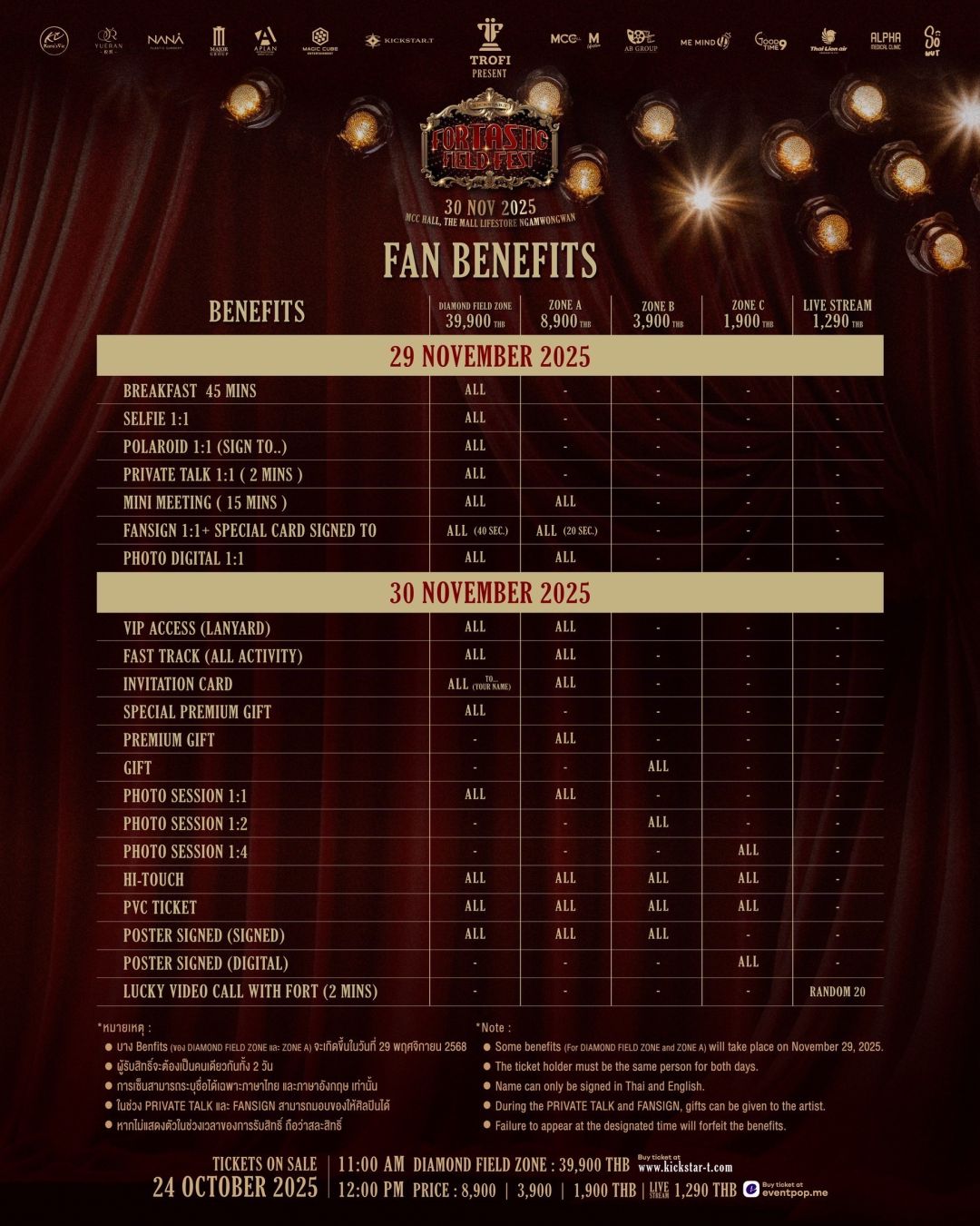 เปิดจำหน่ายบัตร : วันที่ 24 ตุลาคม 2025 เวลา 11:00 น. เปิดขายเฉพาะ Diamond Field Zone (39,900 บาท)