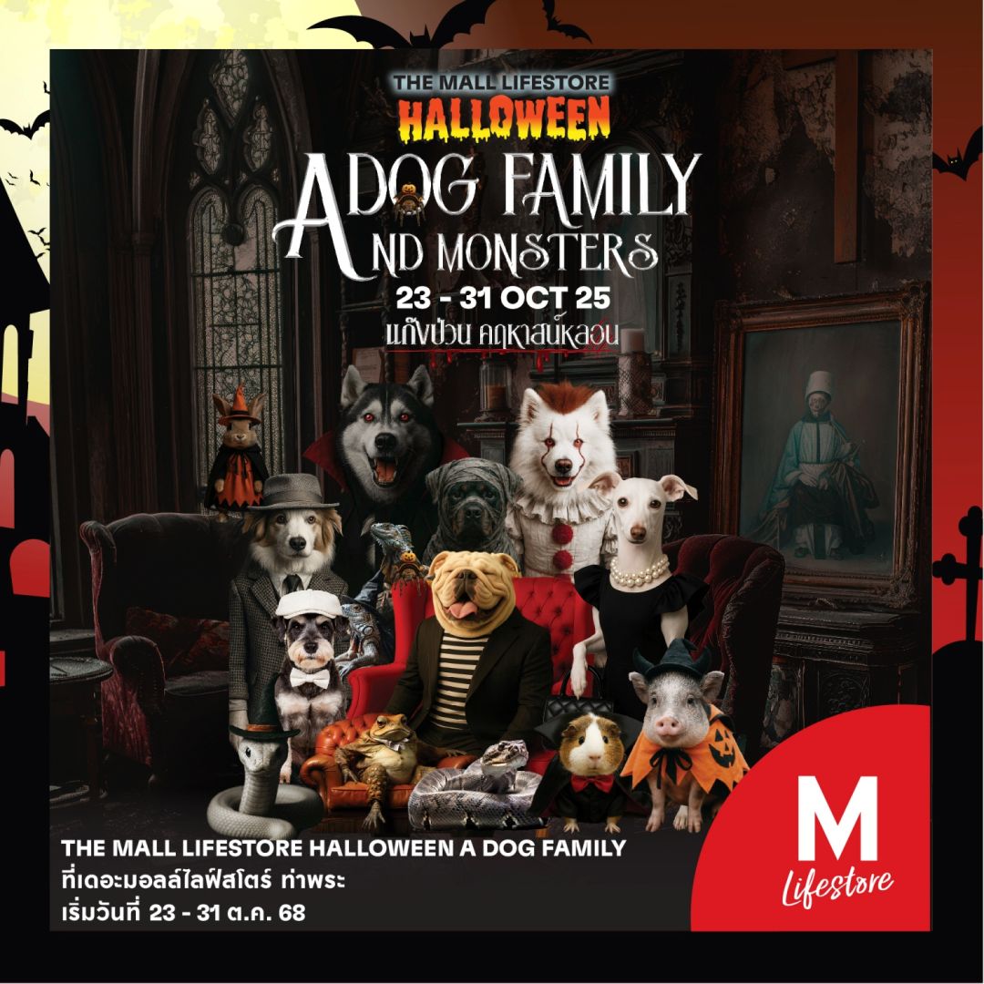 • แก๊งป่วนคฤหาสน์หลอน” ปนน่ารักของเหล่าน้องหมา “แก๊ง DOGCULA ครอบครัว A DOG FAMILY ที่ชั้น G M LIFESTYLE HALL เดอะมอลล์ไลฟ์สโตร์ ท่าพระ วันที่ 24–31 ต.ค. 68