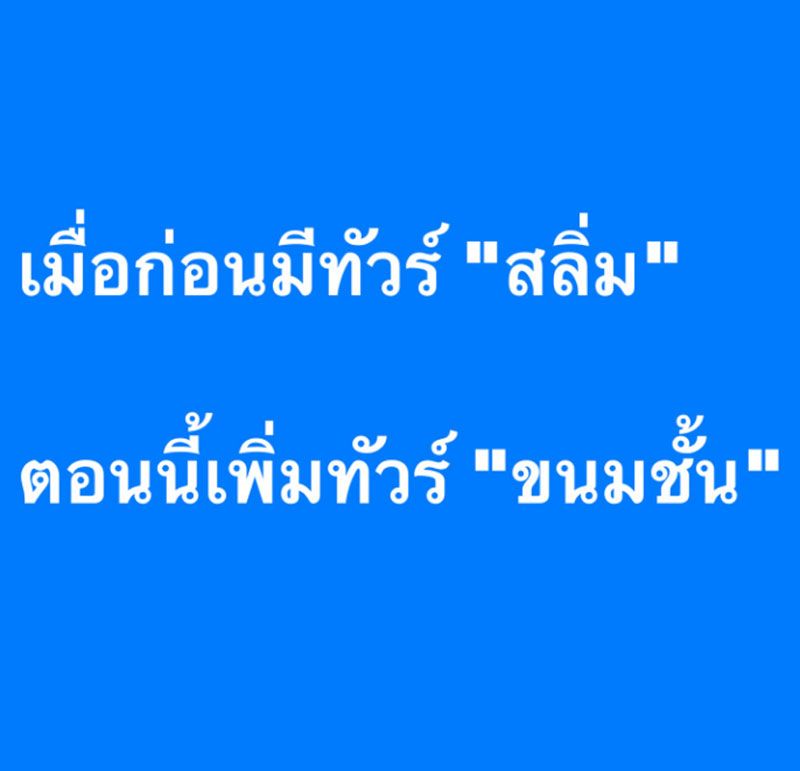 ก่อนที่ 'อ๋อม สกาวใจ' จะออกมาลงรูปอีกหนึ่งโพสต์ ระบุข้อความว่า "เมื่อก่อนมีทัวร์ สลิ่ม ตอนนี้เพิ่มทัวร์ ขนมชั้น"