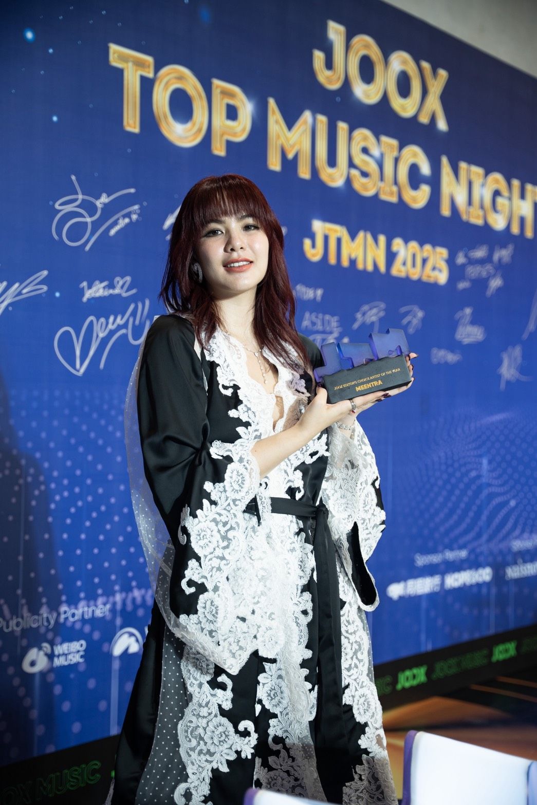 “มีนตรา อินทิรา” ศิลปินสาวชื่อดังจากแกรมมี่โกลด์ ขึ้นรับรางวัลในงาน Joox Top Music Night 2025 กับรางวัล JOOX Editor’s Choice Artist of the Year ท่ามกลางเสียงปรบมือจากคนทั้งฮอลล์ พร้อมสร้างความประทับใจด้วยโชว์เปิดเวทีสุดแซ่บถึงเครื่อง ร่วมกับ “เต๋า ทัศนัย” อีกหนึ่งศิลปินมากความสามารถ ที่ทั้งคู่ระเบิดพลังในฐานะตัวแทนจากค่ายแกรมมี่โกลด์อย่างเต็มภาคภูมิ สะท้อนเสน่ห์ของเพลงลูกทุ่งไทยร่วมสมัยสู่สายตาแฟนเพลงทั่วโลกอย่างน่าชื่นชม