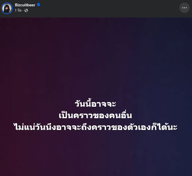 โดยเบียร์ได้โพสต์ข้อความ ระบุว่า “วันนี้อาจจะเป็นคราวของคนอื่น ไม่แน่วันนึงอาจจะถึงคราวของตัวเองก็ได้นะ”