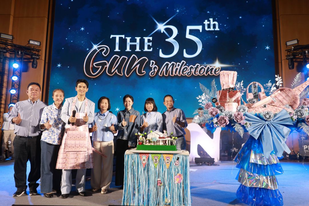 ก่อนจะเดินทางไปร่วมงานฉลองครบรอบวันเกิดร่วมกับแฟนคลับที่อยู่ด้วยกันมายาวนานตลอด 16 ปี แถมโมเมนต์สุดประทับใจที่หนุ่มกันก้มกราบคุณพ่อคุณแม่ และตบท้ายด้วยเซอร์ไพรส์จากเพื่อนๆนักแสดง อาทิ อ๋อลี่ ตติยา, กานต์ ทศน, แพมมี่ สุธิดา และ แป้งร่ำ ศิวนารี ที่มาโชว์ร้องเพลงเอ็นเตอร์เทนมอบความสุขให้แฟนคลับภายในงาน THE 35 th Gun & Milestone Birthday Charity Concert ที่จัดขึ้น ณ สำนักงานใหญ่ โทรคมนาคมแห่งชาติ แจ้งวัฒนะ