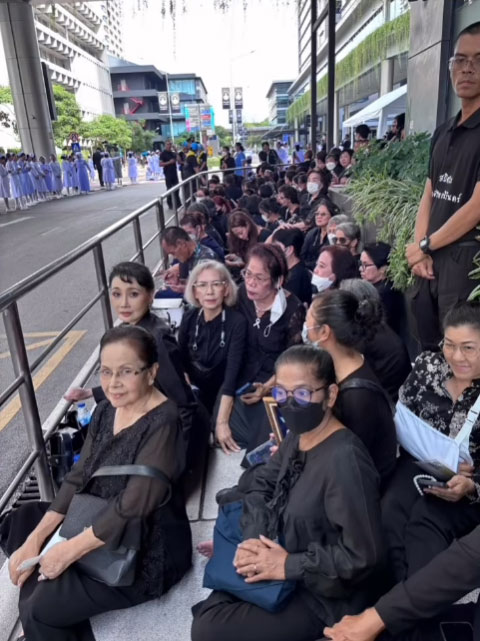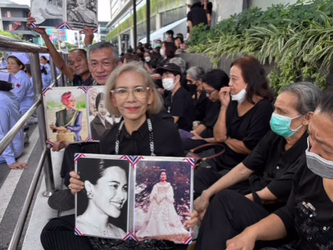 ทั้งนี้ นักแสดงอาวุโส ตุ๊ก เดือนเต็ม ได้โพสต์ภาพแต่งกายไว้ทุกข์ เดินทางไปร่วมถวายความอาลัยที่โรงพยาบาลจุฬาลงกรณ์ พร้อมถือพระฉายาลักษณ์และเขียนข้อความแสดงความอาลัยว่า
