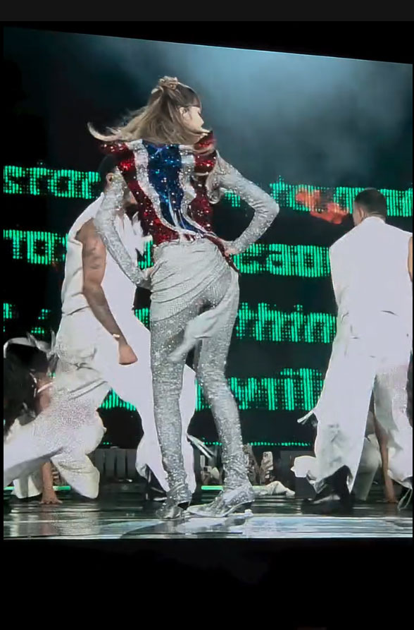 ช่วงโซโล่ของสาว "ลิซ่า ลลิษา มโนบาล" เรียกได้ว่าเป็นไฮไลต์ของค่ำคืนนั้น เมื่อเจ้าตัวปรากฏตัวในชุดบอดี้สูทคริสตัลระยิบระยับสุดอลังการ พร้อมดีเทลสุดพิเศษด้านหลังที่นำสี “แดง-ขาว-น้ำเงิน” ของ ธงชาติไทย มาประดับไว้อย่างงดงามและลงตัว จนผู้ชมในสนามต่างกรี๊ดลั่นและน้ำตาซึมด้วยความปลื้มที่ไอดอลสาวแสดงความรักต่อบ้านเกิดอย่างงดงาม