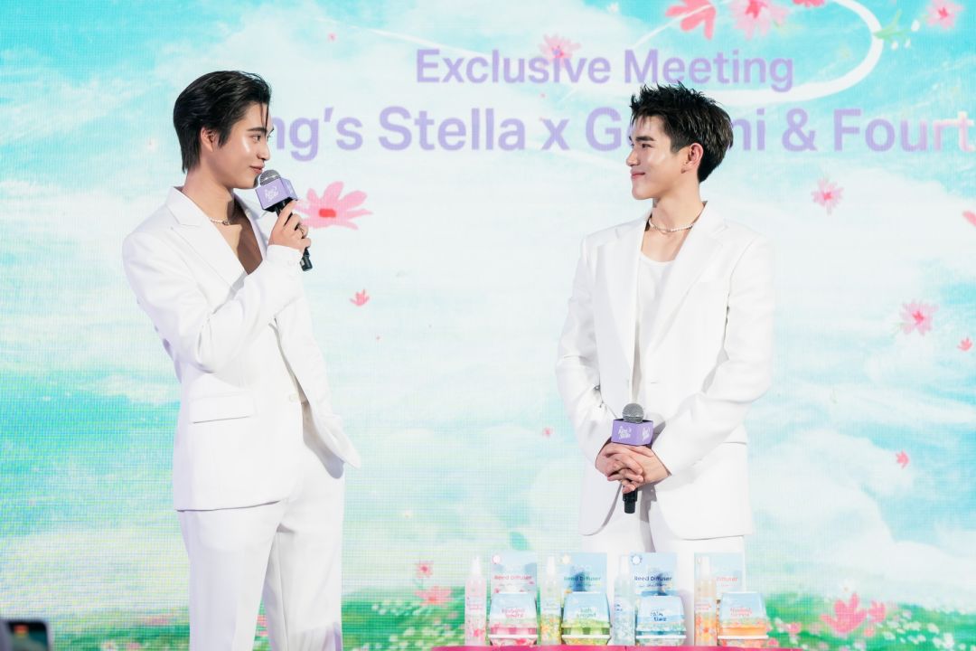 เจมีไนน์-นรวิชญ์ ฐิติเจริญรักษ์ และ โฟร์ท-ณัฐวรรธน์ จิโรชน์ธิกุล กล่าวถึงความรู้สึกในการร่วมงานครั้งนี้ว่า “ดีใจมากที่ได้มาร่วมงานครั้งนี้ มีโอกาสสัมผัสความหอม ทั้งกลิ่นและสัมผัส ผ่านบรรยากาศสุดละมุนที่ถ่ายทอดความหอมราวกับอยู่ท่ามกลางทุ่งดอกไม้ ไปพร้อมกับการค้นหากลิ่นที่เป็นตัวเอง ซึ่งทั้ง 4 กลิ่นของ King’s Stella Feel the Bloom คือ Blooming Sphere, Lush Around, Tropical Sunrise และ Calm Time มีความหอมที่แตกต่างกัน และโดยส่วนตัวพวกเราก็ชอบกลิ่นหอมกันอยู่แล้ว มักจะใช้ผลิตภัณฑ์สร้างกลิ่นในห้องต่าง ๆ ภายในบ้านเพื่อสร้างบรรยากาศที่ดี การมาร่วมกิจกรรมของ King’s Stella ครั้งนี้ไม่ใช่แค่มาโชว์ แต่เป็นการได้อยู่กับแฟนคลับอย่างใกล้ชิด ได้ทำกิจกรรมสนุก ๆ บนเวทีอย่าง หอมไหน ให้ทาย และซ่อนกลิ่น พร้อมทั้งร้องเพลงให้ทุกคนได้ฟัง ซึ่งทุกกิจกรรมอบอวลไปด้วยกลิ่นหอมและพลังบวกที่ทำให้ทุกคนยิ้มได้ เราหวังว่าทุกคนจะได้รับความสุข ตลอดจนได้ค้นหากลิ่นหอมที่สะท้อนความเป็นตัวเองด้วยเช่นกัน”