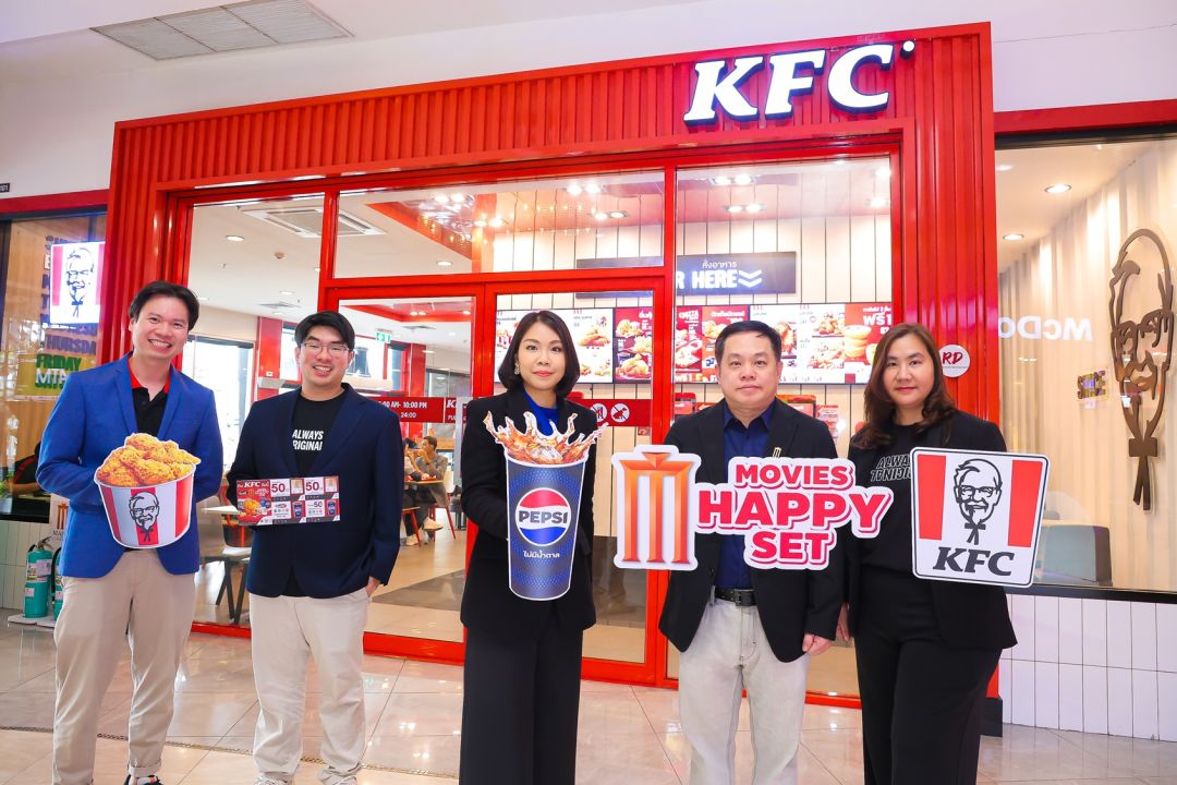 วิชัย กุลธวัชชัย ผู้อำนวยการฝ่ายการตลาด บริษัท เมเจอร์ ซีนีเพล็กซ์ กรุ้ป จำกัด (มหาชน) จับมือพันธมิตร ปิยาภัสร์ สุขฑีฆะ รองประธานบริหารฝ่ายขาย - ช่องทางร้านอาหารและการบริโภคนอกบ้าน บริษัท ซันโทรี่ เป๊ปซี่โค เบเวอเรจ (ประเทศไทย) จำกัด, เจริญชัย บำรุงวงศ์ทอง ประธานเจ้าหน้าที่ฝ่ายการตลาด บริษัท เรสเทอรองตส์ ดีเวล ลอปเม้นท์ (RD) จำกัด พร้อมด้วย ชยธร อาทรสมบัติ ผู้อำนวยการฝ่ายการตลาด บริษัท เซ็นทรัล เรสเทอรองส์ กรุ๊ป จำกัด (KFC) และ กิรณา ฤกษ์บางพลัด ผู้จัดการอาวุโสฝ่ายการตลาด บริษัท เดอะ คิวเอสอาร์ ออฟ เอเชีย จำกัด (QSA) ร่วมกันจัดแคมเปญพิเศษ “Movie Happy Set” เพื่อมอบความสุขและความบันเทิงให้กับลูกค้าคนรักหนัง และแฟนพันธุ์แท้ไก่เคเอฟซีและเครื่องดื่มเป๊ปซี่