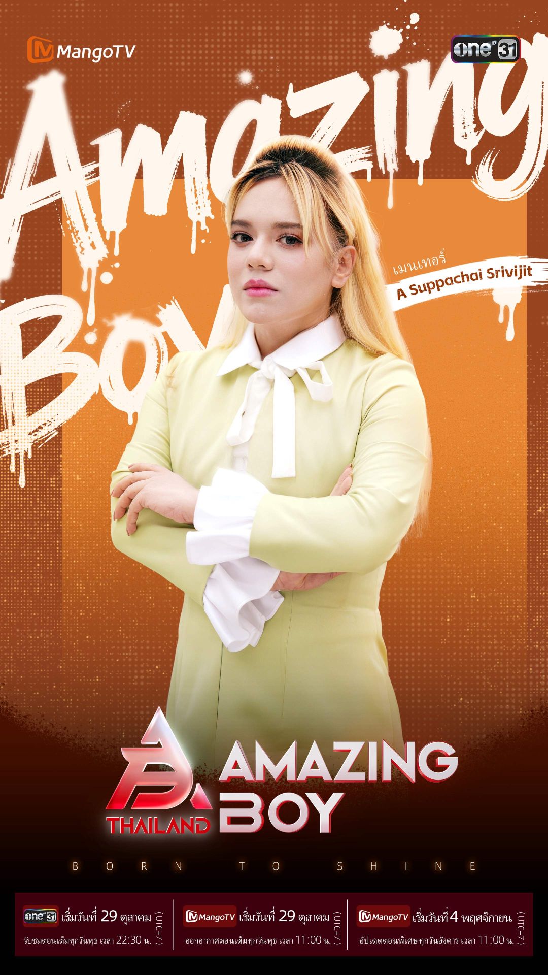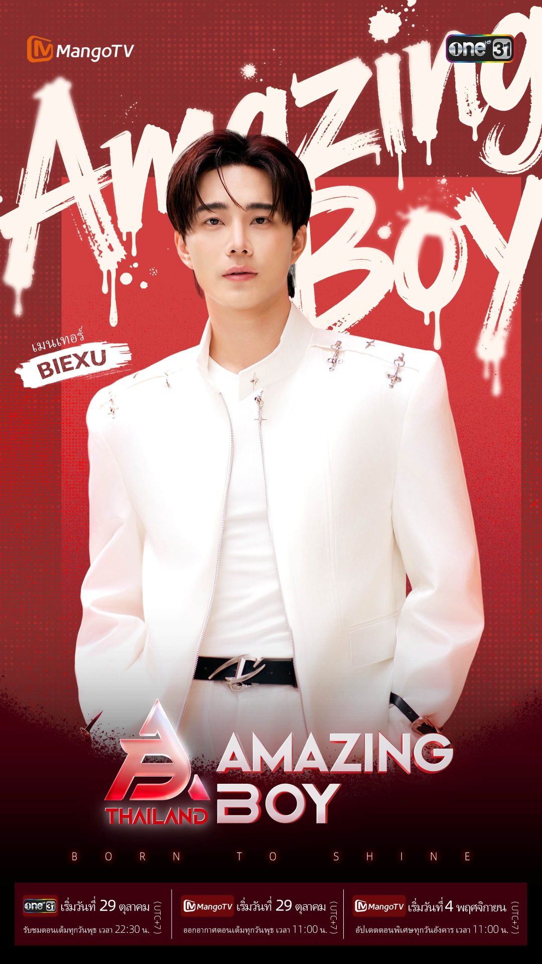ติดตามชมความสนุกของรายการ Amazing Boy Thailand เต็มรูปแบบได้ในวันพุธที่ 29 ตุลาคมนี้ เวลา 22.30 – 23.30 น. ทางช่อง One 31 และ App Mango TV ในวันพุธที่ 29 ตุลาคมนี้ เวลา 11.00 -12.00 น. และวันอังคารที่ 4 พฤศจิกายน เวลา11.00 - 12.30 น. พร้อมติดตามความเคลื่อนไหว และให้กำลังใจหนุ่มๆ Amazing Boy Thailand ทั้ง 16 ได้แบบเรียลไทม์ทุกวัน เวลา 21.00 น. โดยไลฟ์สดทาง TikTok @mgtv.amazingboy_live! และเพิ่มเติมทาง Youtube: @AmazingBoy-official