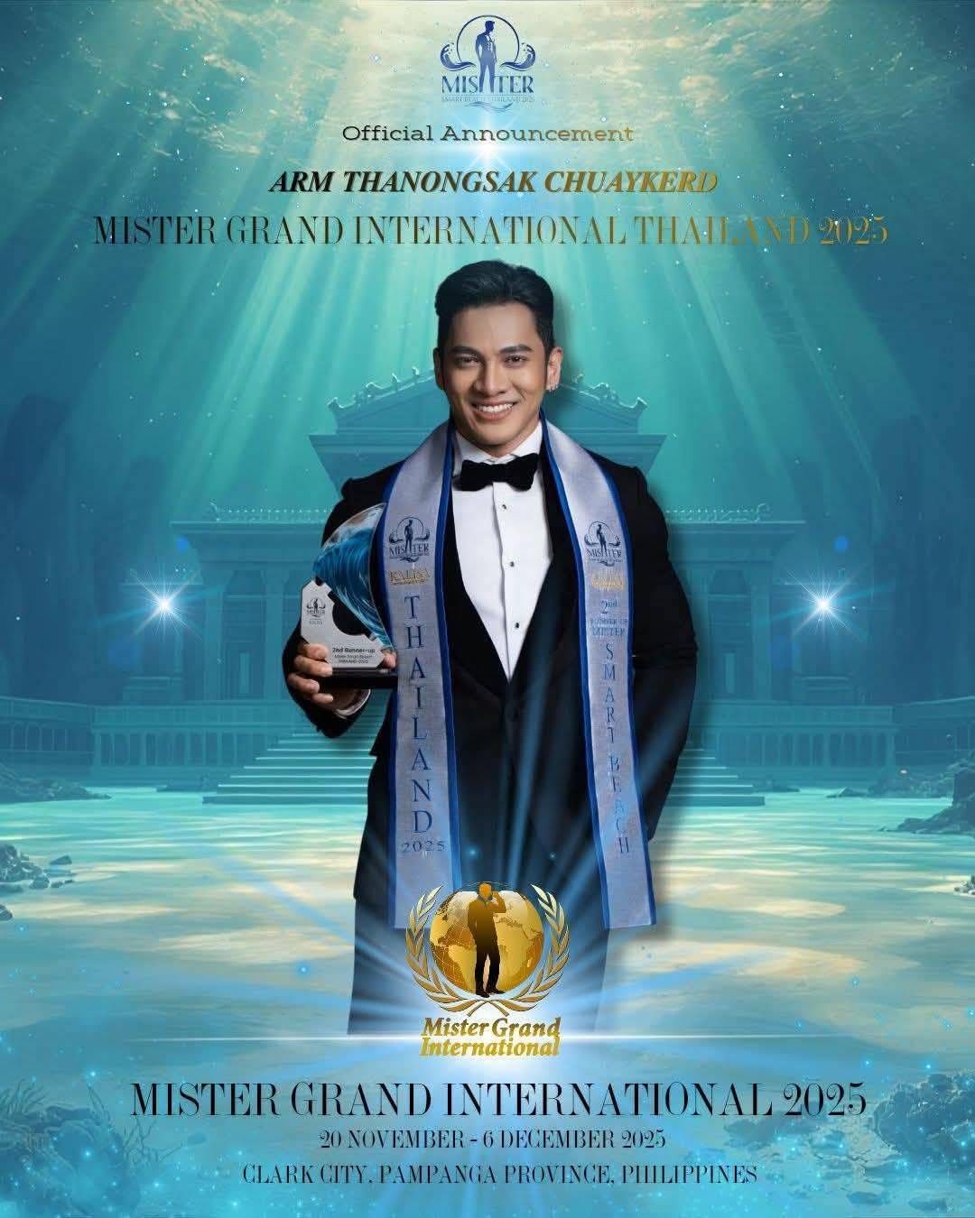 Official Announcementกองประกวด Mister Smart Beach Thailand ภายใต้การบริหารของ แอล – ภาณุทัช ธนวราภูวดล (Mr. Panutouch Thanawaraphuwadol)National Director – Thailandประกาศแต่งตั้งทนงศักดิ์ ช่วยเกิด (อาร์ม)หรือ ARM THANONGSAK CHUAYKERDผู้ครองตำแหน่ง 2nd Runner-Up Mister Smart Beach Thailand 2025ให้เป็นตัวแทนประเทศไทย เข้าร่วมการประกวด Mister Grand International 2025ซึ่งจะจัดขึ้น ณ เมืองคลาร์ก จังหวัดปัมปังกา ประเทศฟิลิปปินส์ระหว่างวันที่ 20 พฤศจิกายน – 6 ธันวาคม 2568