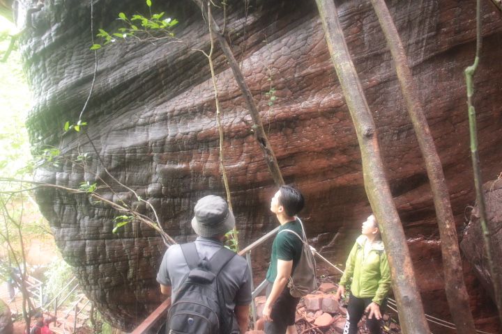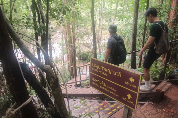 จากนั้นเดินขึ้นผานาคี... ก็จะพบกับหน้าผาที่มีรอยพระหัตถ์พระพุทธเจ้า อีกฝั่งเป็นประเทศลาว ส่วนขากลับลงไปยังมีอีกหลายจุดที่น่าสนใจ ไม่ว่าจะเป็นเมืองบังบด เศียรนาคีที่ 4 ซึ่งเศียรนี้จะเห็นเกล็ดชัดเจนมาก และยังมีน้ำตกไทรงาม ชั้นที่ 3 ที่สามารถแวะเล่นน้ำได้อีกด้วย