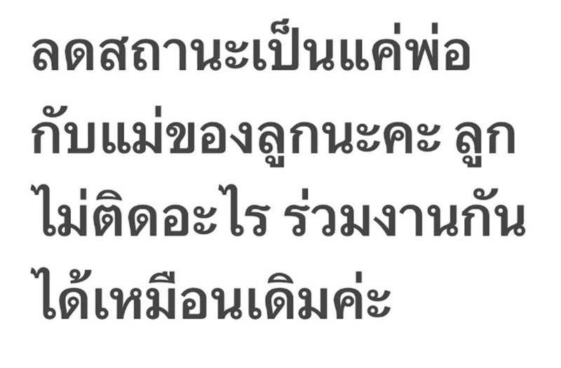'ธัญญ่า ธัญญาเรศ' ได้โพสต์ข้อความว่า "ลดสถานะเป็นแค่พ่อกับแม่ของลูกนะคะ ลูกไม่ติดอะไร ร่วมงานกันได้เหมือนเดิมค่ะ" พร้อมแนบแคปชั่นว่า.. 20ปี บริบูรณ์ โดยหลังจากที่ 'ธัญญ่า ธัญญาเรศ' ได้โพสต์ข้อความนี้ออกไปนั้นก็มีชาวโซเชียลเข้าไปแสดงความคิดเห็นกันเป็นจำนวนมาก