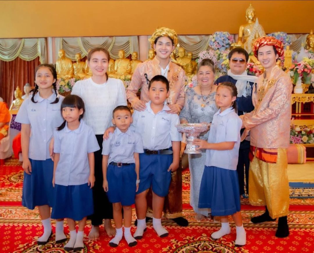 โดยได้รับเมตตาจาก พระอาจารย์โต หรือ พระครูพิพัฒน์สุตสุนทร (กฤต ฐิตวิริโย ป.ธ.๓) #พระครูบาโต ผู้ช่วยเจ้าอาวาสวัดเจ็ดยอด พระอารามหลวงประธานสงฆ์วัดพระพุทธบาทปางแฟน ตำบลป่าเมี่ยง อำเภอดอยสะเก็ด จังหวัดเชียงใหม่ ให้เกียรติร่วมในพิธีบวงสรวงเบิกเนตร และพุทธาภิเษก "พระแม่ธรณี" และร่วมพิธีทอดกฐิน สร้างกุศลกับพุทธศาสนิกชนจำนวนมากในบรรยากาศอิ่มบุญอิ่มใจในงานนี้ เล้ง-แสตมป์ ยังได้มอบทุนการศึกษาร่วมกับ คุณแม่มาลี สุวรรณณัชตมณี คุณยายคนสวยของ น้องแสนดี-ด.ญ. แสนดี สันติไพศาล วัย 13 ปี Brand Ambassder เรือนคุณชาย คนแรกของประเทศไทย อีกด้วยการเดินทางครั้งนี้นอกจากจะเป็นการสืบสานศรัทธาในพระพุทธศาสนาแล้ว ยังสะท้อนถึงจิตอาสาและพลังแห่งความดีของคนรุ่นใหม่ ที่ใช้ชื่อเสียงในวงการบันเทิงสร้างแรงบันดาลใจให้แฟนคลับร่วมทำความดี และอนุโมทนาบุญไปด้วยกัน