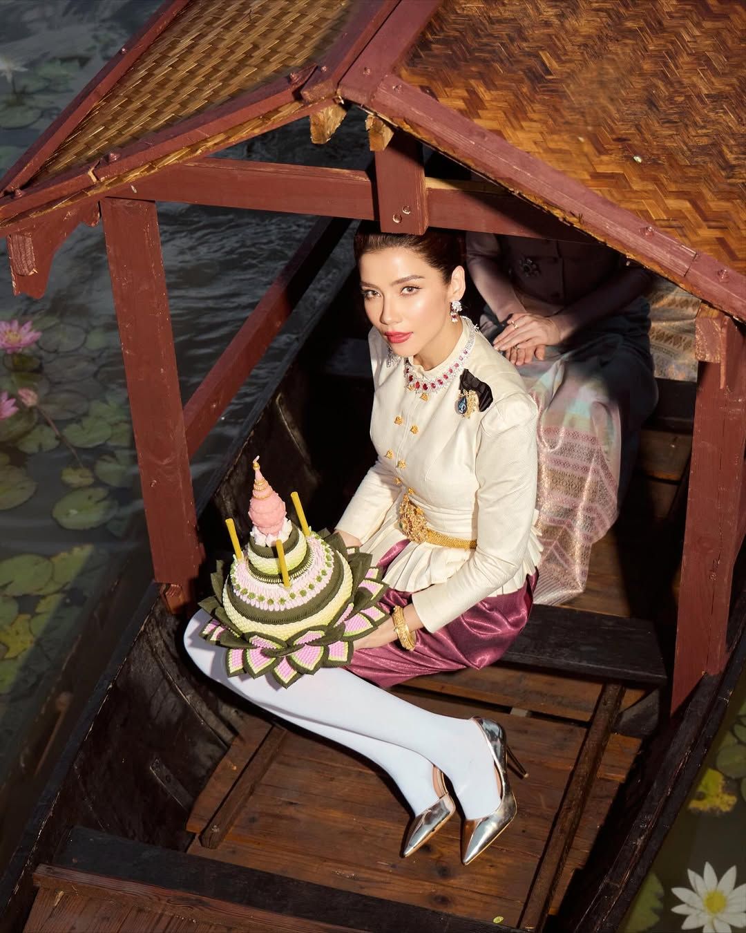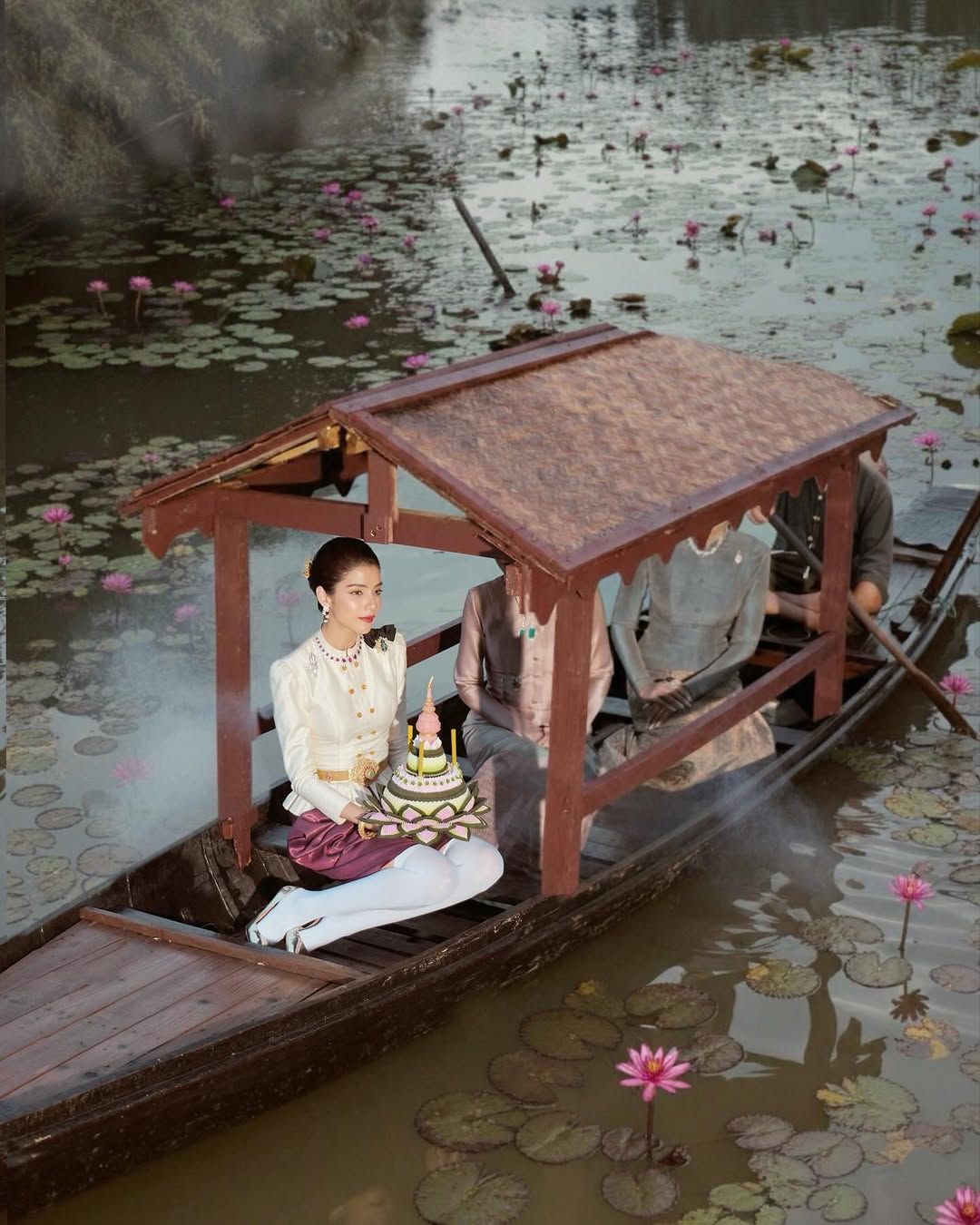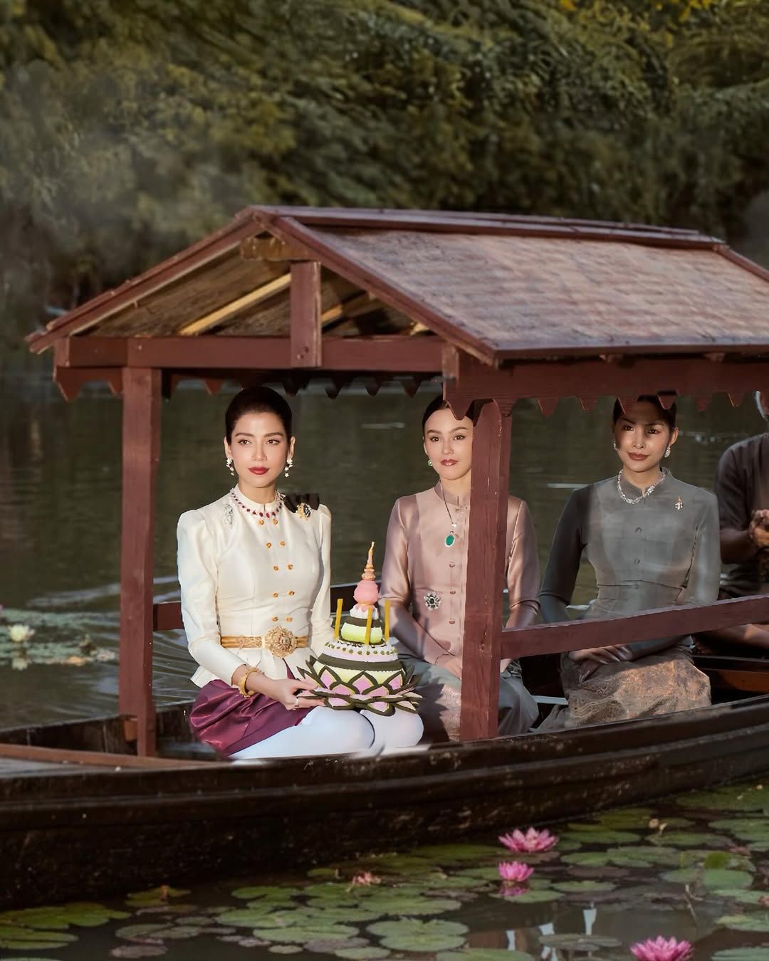 4 พฤศจิกายน 2568 ทำเอาโซเชียลตะลึงอีกครั้ง เมื่อ “จีน่า เดอะเฟซ” ปรากฏตัวในลุคชุดไทยสุดสง่า ถือกระทงรับคืนพระจันทร์เต็มดวง บอกเลยว่าสวยละมุนเหมือนหลุดออกมาจากวรรณคดี แต่งหน้าสไตล์เรียบหรูดูแพง ผมเกล้ารวบเรียบแบบไทยประยุกต์ เรียกได้ว่าสวยละมุนทุกองศา