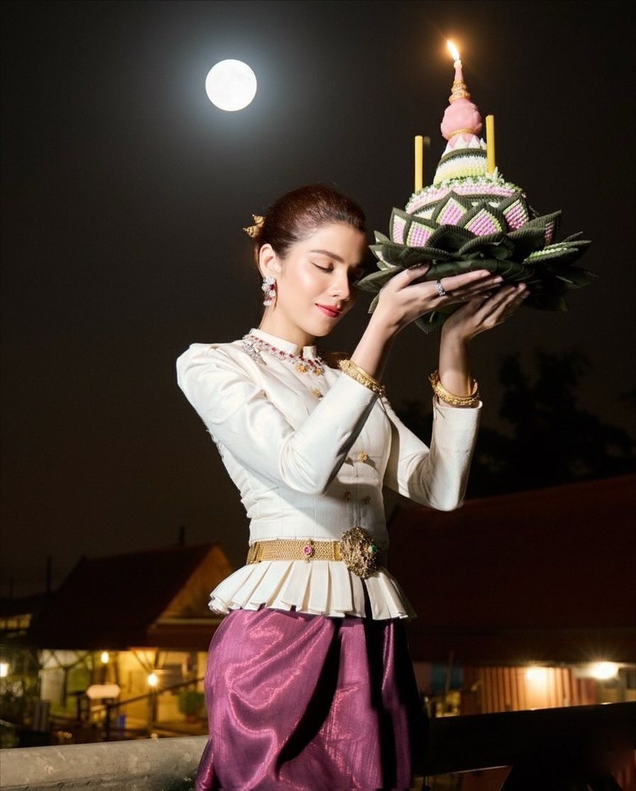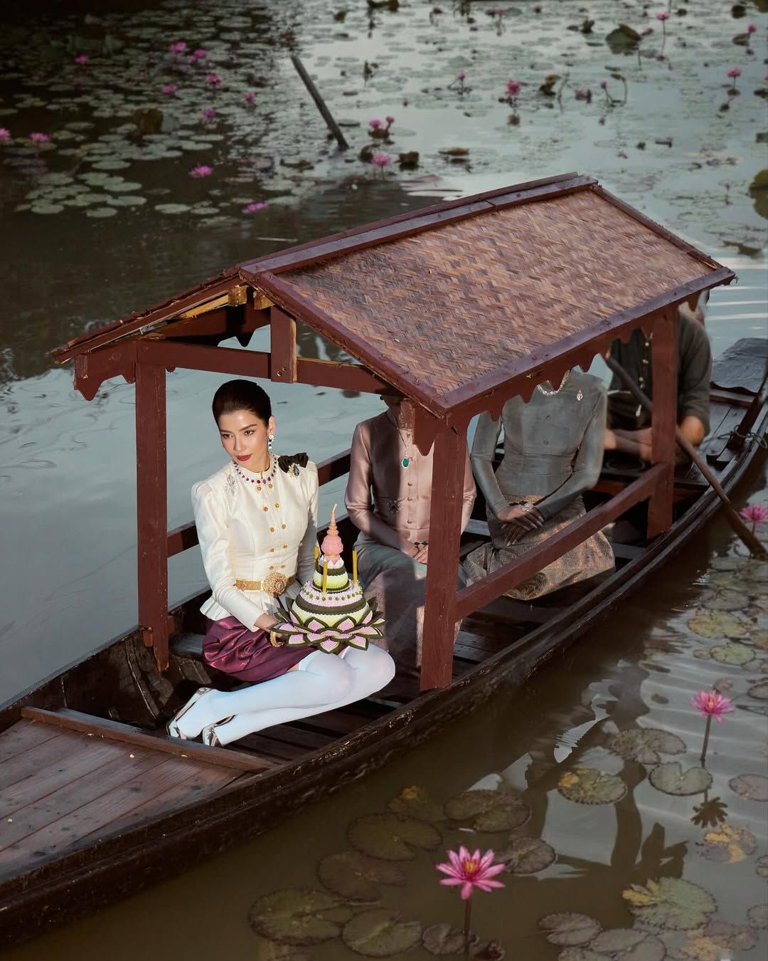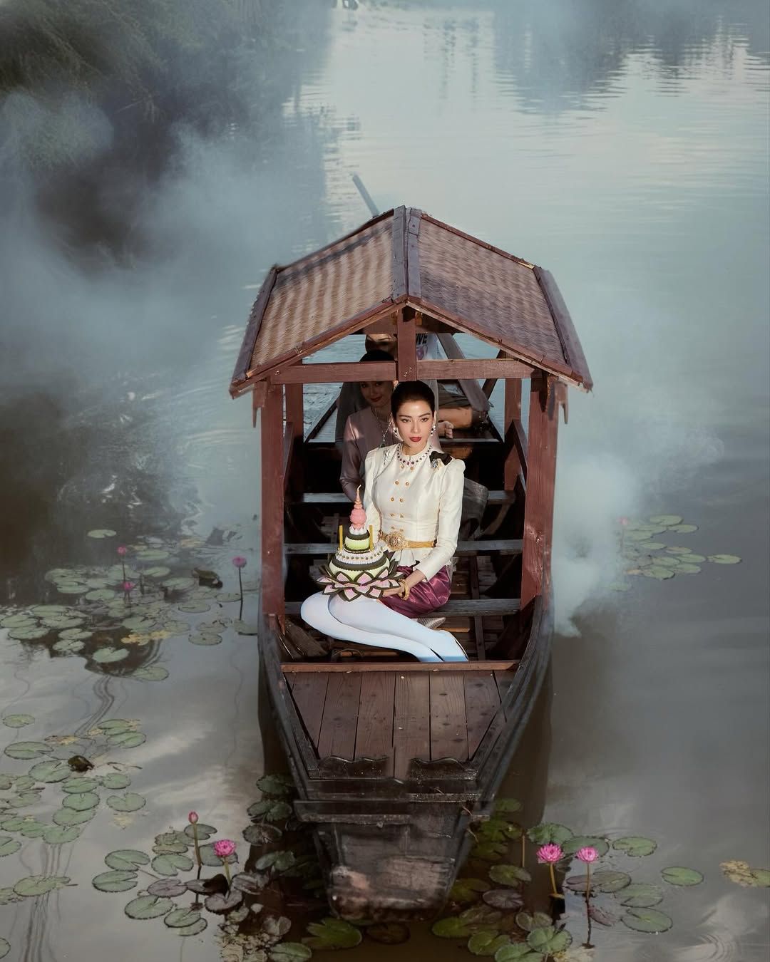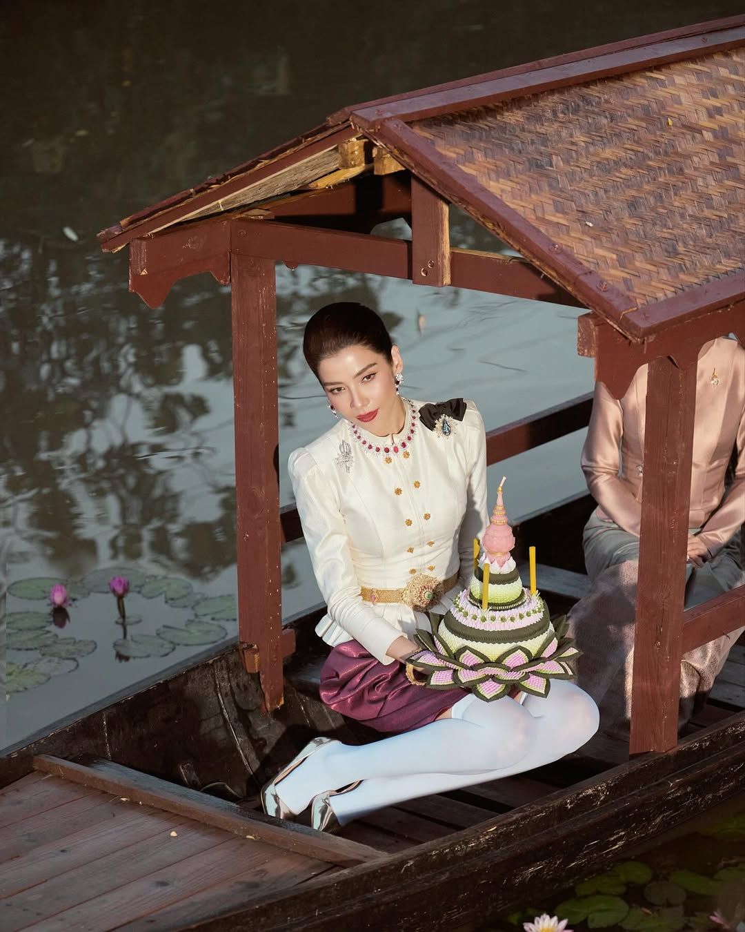 4 พฤศจิกายน 2568 ทำเอาโซเชียลตะลึงอีกครั้ง เมื่อ “จีน่า เดอะเฟซ” ปรากฏตัวในลุคชุดไทยสุดสง่า ถือกระทงรับคืนพระจันทร์เต็มดวง บอกเลยว่าสวยละมุนเหมือนหลุดออกมาจากวรรณคดี แต่งหน้าสไตล์เรียบหรูดูแพง ผมเกล้ารวบเรียบแบบไทยประยุกต์ เรียกได้ว่าสวยละมุนทุกองศา