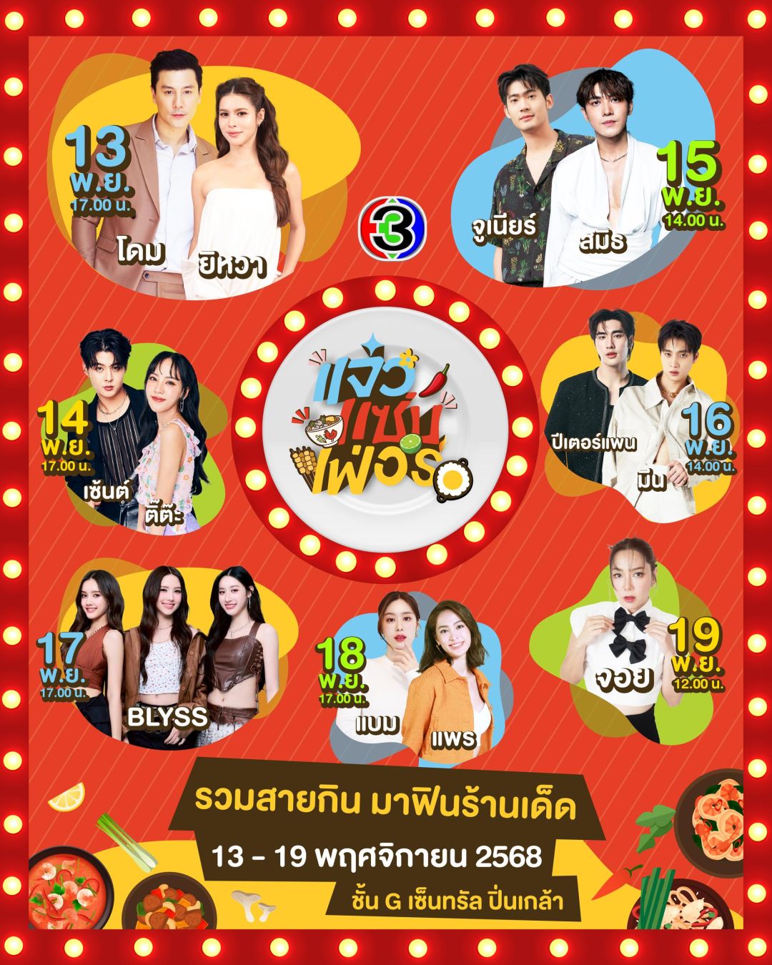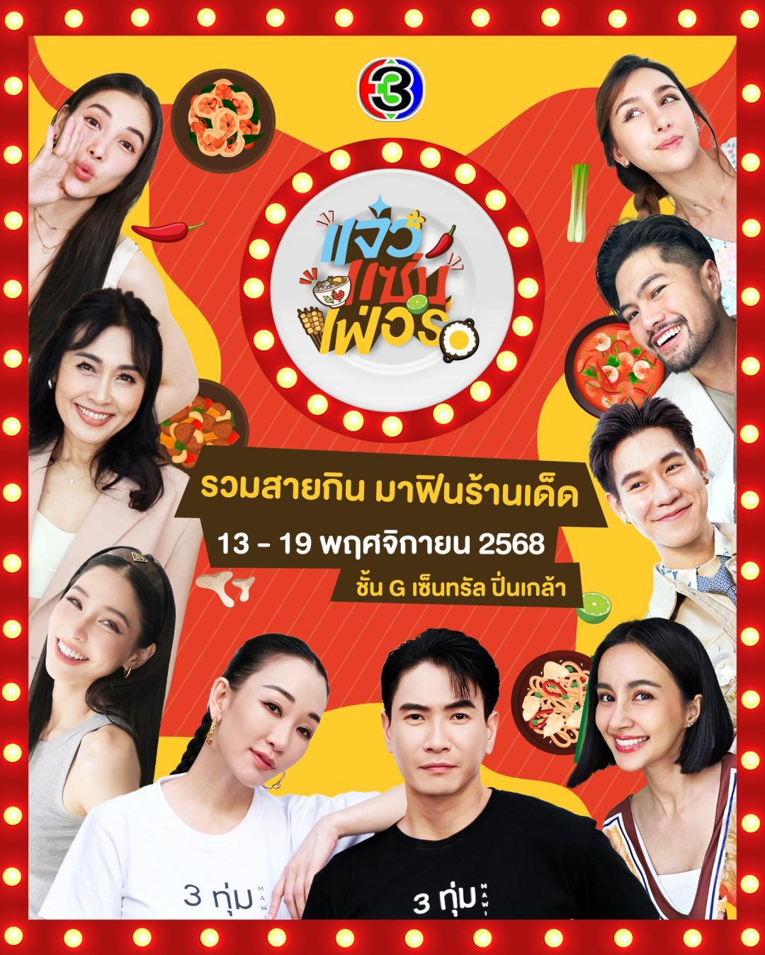 ช่อง 3 ส่งท้ายปลายปี 2568 ด้วยมหกรรมอาหารสุดยิ่งใหญ่ “แจ๋วแซ่บเฟ่อร์” รวมสายกินมาฟินร้านเด็ด ขนทัพร้านค้ามาให้เลือกชิมกว่า 70 ร้านค้า ทั้งคาวและหวาน คัดสรรโดย 3 รายการดังอย่าง ผู้หญิงยกกำลังแจ๋ว ที่ผนึกกำลัง แซ่บพาซ่าส์ และ ช่องยูทูปมาวินฟินเฟ่อร์ แถมยังยกทัพนักแสดงช่อง 3 มาเสิร์ฟความสุขตลอด 7 วัน! พร้อมกิจกรรมจัดเต็มตลอดทั้งงาน เตรียมปักหมุดความอร่อยกันได้เลย ตั้งแต่วันที่ 13 - 19 พฤศจิกายนนี้ ที่ชั้น G เซ็นทรัลปิ่นเกล้า