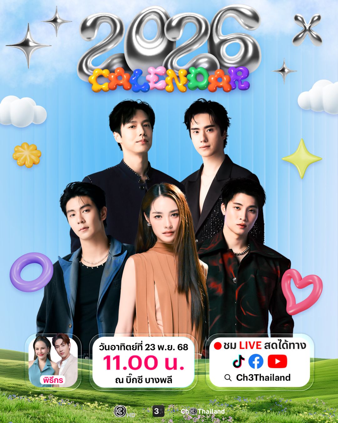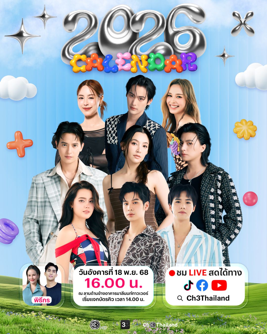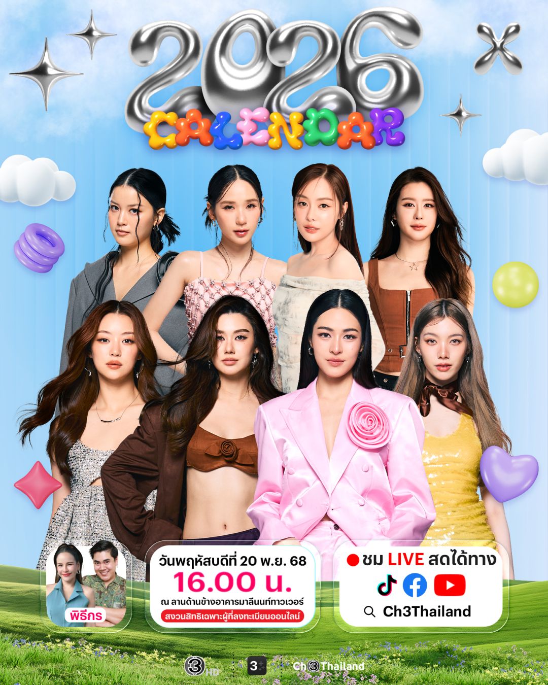 สำหรับวันพฤหัสบดีที่ 20 พฤศจิกายน 2568 เวลา 16.30 น.เป็นต้นไป ณ ลานด้านข้างอาคารมาลีนนท์ทาวเวอร์ พบกับเซอร์ไพรส์สุดพิเศษจาก 8 สาว หลิงหลิง คอง, ออม กรณ์นภัส, ลีน่า ลลินา, หมิว ณัชชา, แทน ดวงแก้ว, ญดา นริลญา, อุ้ม อิษยา และ แบม สราลี เตรียมตัวให้พร้อม! งานนี้เฉพาะผู้ได้รับคัดเลือกจากการลงทะเบียนออนไลน์เท่านั้น! โดยแฟน ๆ สามารถร่วมสนุกตอบคำถามผ่าน 3Plus เพื่อรับสิทธิ์เข้าร่วมงาน ผู้โชคดี 500 ท่านแรกจะได้รับปฏิทินพร้อมลายเซ็น และผู้โชคดี 300 ท่านถัดไปจะได้รับปฏิทินเท่านั้น! ติดตามรายละเอียดการร่วมสนุกเพิ่มเติมได้ที่ 3Plus