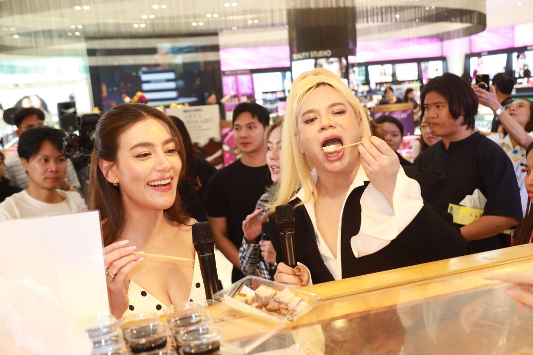 “อยากมาเดินตลาดพี่เอมาก แต่ไม่มีโอกาส เพิ่งจะได้มาครั้งนี้ แฮปปี้ มีความสุขมากค่ะ เพราะคิมเป็นคนชอบทานของอร่อย ที่นี่มีของอร่อยเยอะมาก มาวันนี้ก็ดีใจมาก ชอบมาก ได้ของอร่อยหลากหลายกลับบ้านไปเยอะมาก กินกันเป็นอาทิตย์ก็ไม่หมด แม่ค้าฝากอาหารไปให้พี่หมาก ปริญ ด้วย พี่เอ ศุภชัย ก็ซื้อให้มากมายจริงๆ อยากให้ทุกคนมาเดินงานเอแฟร์ของพี่เอ รับรองไม่ผิดหวังค่ะ ของอร่อยเยอะจริงๆ”