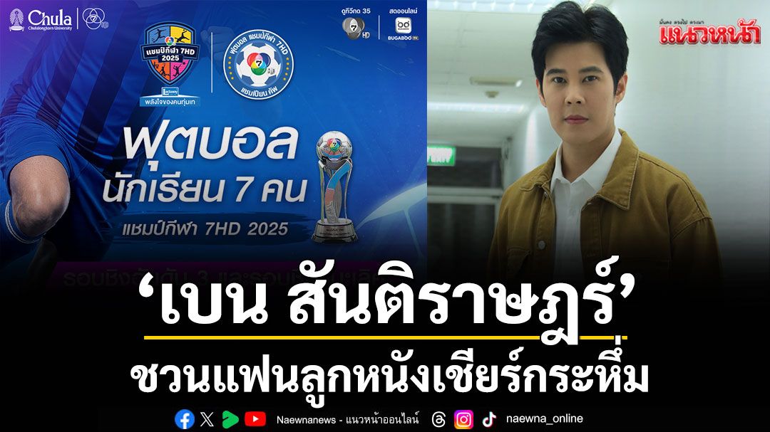 งานนี้นักแสดงมากความสามารถ เบน-สันติราษฎร์ ที่พ่วงตำแหน่งผู้ประกาศข่าวรายการ สนามข่าวกีฬา ขอส่งกำลังใจให้เหล่านักเตะและเชิญชวนแฟนกีฬา มาร่วมลุ้นไปกับบทสรุปของการแข่งขันครั้งนี้ “หลังเปิดสนาม“ฟุตบอลนักเรียน 7 คน แชมป์กีฬา 7HD แชมเปียน คัพ 2025 ให้น้อง ๆ ได้ประชันฝีเท้า ดวลแข้งเดือดร่วมเดือน ในที่สุดเดินทางมาถึงรอบชิงชนะเลิศแล้ว ในฐานะแฟนฟุตบอลและผู้ประกาศข่าวกีฬา มีโอกาสได้ติดตามการแข่งขันและรายงานผลมาโดยตลอดเห็นเลยว่าแต่ละทีมเก่งมาก ๆ วงการฟุตบอลบ้านเราพัฒนาขึ้นมาก ส่วนหนึ่งมาจากน้อง ๆ นักเตะรุ่นใหม่ที่ช่วยกันรันวงการ ที่สำคัญยังมีรายการที่สนับสนุนให้เด็ก ๆ ได้แสดงศักยภาพตัวเองอีกด้วย ผมเชื่อว่านี่คือโอกาสที่ทำให้ได้เติบโตบนเส้นทางฟุตบอล ทั้งระดับสโมสร ระดับ