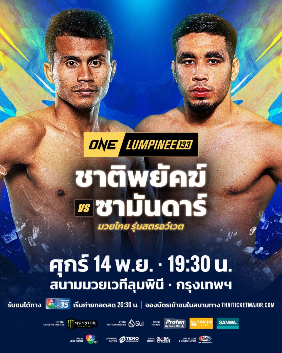 สุดสัปดาห์มาพร้อมความมัน ช่อง 7HD ส่งตรงความมันผ่านหน้าจอให้ได้เชียร์จัดเต็ม เริ่มด้วย วันศุกร์ที่ 14 พฤศจิกายนนี้ พบกับศึก ONE ลุมพินี 133 นำโดย คู่เอกของรายการ ป้อมเพชร พีเค.แสนชัย นักสู้ใจเด็ด จากบุรีรัมย์ขอเดินหน้าต่อด้วยความมั่นใจ ปะทะแกร่ง เกรเกอร์ ทอม จอมบู๊สายลุย จากสกอตแลนด์ ที่หวังคว้าแต้มชัยต่อเนื่อง ในกติกามวยไทย รุ่นฟลายเวต ด้านคู่เอกภาคอินเตอร์ ชาติพยัคฆ์ ศักดิ์สตูล มวยพลังแกร่ง จากสตูล เล็งกลับมาปั้นฟอร์มเก่ง อาสารับมือนักสู้ป้ายแดง ซามันดาร์ คาซานอฟ จากอุซเบกิสถาน ที่หวังแจ้งเกิดเต็มตัว ในกติกามวยไทย รุ่นสตรอว์เวต ร่วมด้วยคู่มวยมันอีกมากมาย