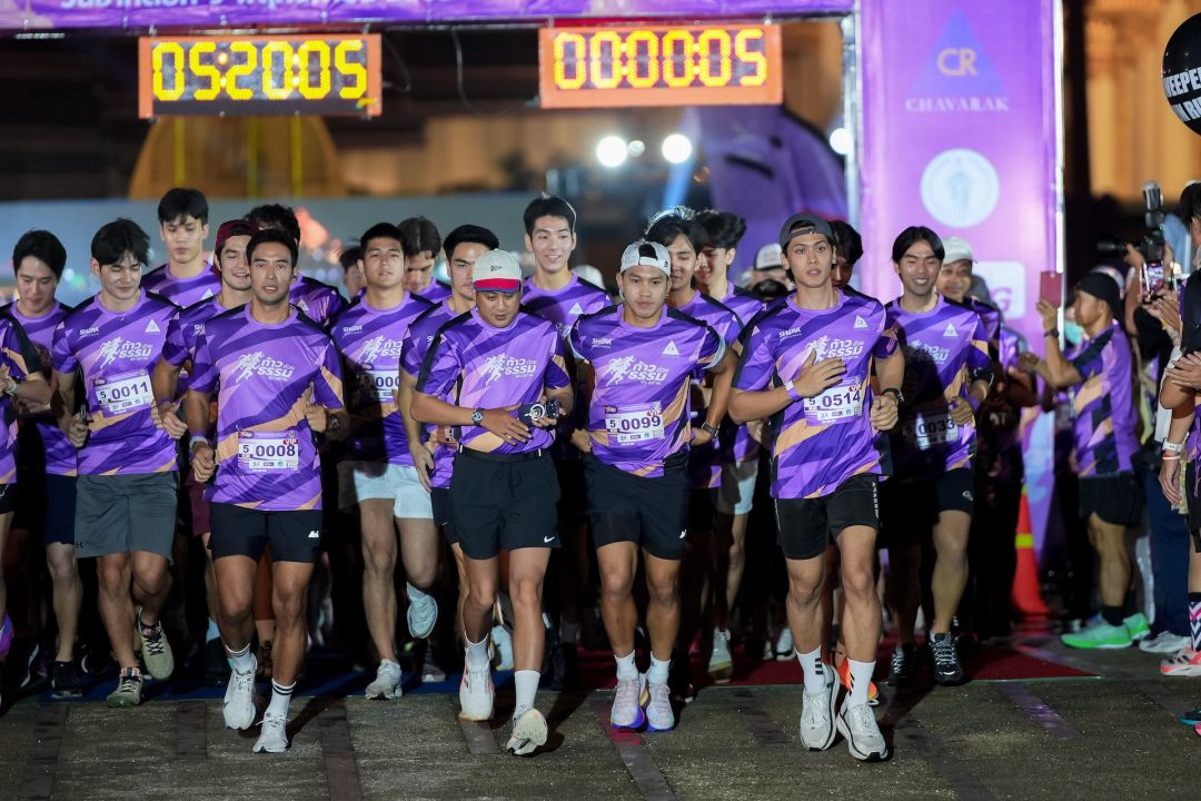 โดยบรรยากาศภายในงาน มีนักวิ่งสายบุญ แฟน ๆ ก้าวด้วยธรรม ทั้งขาประจำไปร่วมบุญทุกปี และนักวิ่งหน้าใหม่ต่างไปรวมตัวกันตั้งแต่เช้ามืด เต็มลานคนเมืองซึ่งเป็นจุดสตาร์ท ท่ามกลางความพร้อมที่เต็มเปี่ยมไปด้วยความฟิตของร่างกาย และจิตใจ ที่มีทั้งรอยยิ้ม ความสุข สุขภาพดี โดยปีนี้เสื้อวิ่งเป็นสีม่วง เป็นสีประจำคล้ายวันพระราชสมภพของสมเด็จพระกนิษฐาธิราชเจ้า กรมสมเด็จพระเทพรัตนราชสุดา ฯ สยามบรมราชกุมารี และได้พระราชทานพระราชานุญาตให้อัญเชิญพระนามาภิไธย ส.ธ ประดับที่เหรียญ “ก้าวด้วยธรรมเพื่อ ๑๙ โรงพยาบาลครั้งที่ ๙” เพื่อเชิดชูพระเกียรติคุณ พระเมตตาคุณ พระกรุณาคุณ ในสมเด็จพระสังฆราชเจ้ากรมหลวงวชิรญาณสังวรอีกด้วย นอกจากนี้ยังมีตัวแทนนักวิ่ง และผู้สนับสนุนใจดี ที่ตั้งใจมาร่วมกิจกรรมเดิน-วิ่ง กันแน่นขนัด โดยนักวิ่งได้สัมผัสการวิ่งสุดอิ่มใจ บนเส้นทางประวัติศาสตร์ที่สวยงามที่สุด รอบเกาะรัตนโกสินทร์ ในระยะทาง เดินวิ่งเพื่อสุขภาพ Fun Run ระยะ 5 กิโลเมตร และวิ่งมินิมาราธอนระยะ 10.5 กิโลเมตร ซึ่งงานนี้ได้เหล่าพิธีกรตัวท็อปของประเทศ “เปอร์ - สุวิกรม, ปอ-อรรณพ ,แอ๊ด - ไชยวัฒน์ ,ดีเจอรรณพ , วิน ชวนชัย , สต๊อบ ภูริวัชร์ ฯลฯ มาร่วมเฮฮาสร้างบรรยากาศสุดสดชื่นและเป็นกันเองใกล้ชิดกับนักวิ่งทุกคนให้เต็มไปด้วยความสุข สมเป็นงานวิ่งรวมพลังบุญที่อิ่มใจที่สุดจริง ๆ