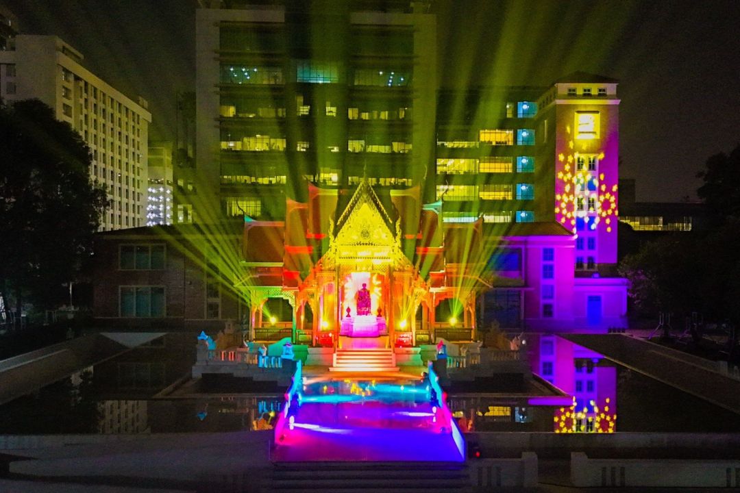เริ่มต้นที่ สะพานพระราม 8 ภายใต้แนวคิด “พระมหากรุณา สายธาราสู่รามา 8” ถ่ายทอดความงดงามของสายน้ำผ่านการแสดงเลเซอร์ประกอบ Light & Sound วันละ 6 รอบ ตั้งแต่เวลา 19.00–21.30 น. ต่อเนื่องด้วยบริเวณ ปากคลองบางกอกน้อย–ปากคลองดุสิต (โรงพยาบาลศิริราช) ภายใต้แนวคิด “สายธารา พระเมตตาสู่ขุนเขา” พิพิธภัณฑ์ศิริราชพิมุขสถาน (โรงพยาบาลศิริราช) กับแนวคิด “สายธารแห่งเวลา มหาธาราสู่ปวงชน” ถ่ายทอดเรื่องราวความผูกพันของสายน้ำและพระมหากรุณาธิคุณอันยิ่งใหญ่ที่หล่อเลี้ยง ผู้คนสองฝั่งเจ้าพระยา บริเวณ อาคารสำนักงานราชนาวิกสภา กองทัพเรือ จัดแสดงในแนวคิด “Might of the Royal Thai Navy มหานุภาพ ราชนาวีไทย” ด้วยการแสดง Light & Sound ผสานเทคนิคพิเศษ สะท้อนพลังแห่งสายน้ำและกองทัพเรือไทยอันทรงเกียรติ ต่อมากับ สวนนาคราภิรมย์ ผู้ชมจะได้ดื่มด่ำกับแนวคิด “Chao Phraya Rhapsody บทกวีแห่งเจ้าพระยา” ที่ถ่ายทอดความงามของแม่น้ำผ่านบทเพลงแห่งแสง ส่วน วัดอรุณราชวรารามราชวรมหาวิหาร จัดแสดงภายใต้แนวคิด “Dawn of Siam อรุณรุ่งแห่งมหานครสยาม” เนรมิตแสงยามค่ำคืนให้เปล่งประกายดั่งอรุณรุ่งแห่งกรุงรัตนโกสินทร์ ถัดมา ป้อมวิไชยประสิทธิ์ ถ่ายทอดพลังแห่งผู้พิทักษ์สายน้ำในแนวคิด “Guardians of the Sea ผู้พิทักษ์แห่งท้องทะเล” และ วัดกัลยาณมิตรวรมหาวิหาร กับแนวคิด “Lamp of Kindred Spirit ธรรมประทีปแห่งกัลยาณมิตร” พร้อมการแสดง Light & Sound และสื่อประสมสุดพิเศษ และบริเวณ สะพานปฐมบรมราชานุสรณ์ (สะพานพระพุทธยอดฟ้า) จัดแสดงภายใต้แนวคิด “Threads of Glory สายใยแห่งความรุ่งเรือง” ด้วยเทคโนโลยีแสง สี เสียงสุดล้ำสมัย Light & Sound ผสานเทคโนโลยีพิเศษ พร้อมการแสดงโดรนสุดอลังการกว่า 500–1,000 ลำ ภายใต้แนวคิด “แสงแห่งสยาม แม่ของแผ่นดิน” ที่จะส่องสว่างเหนือน่านน้ำเจ้าพระยาในค่ำคืนพิเศษ โดยการแสดงโดรน 500 ลำ จัดแสดง วันที่ 14, 21, พฤศจิกายน และ วันที่ 5, 12, 19 ธันวาคม 2568 วันละ 1 รอบ (เวลา 20.45 น.) และการแสดงโดรน 1,000 ลำ จัดแสดง วันที่ 9, 15, 22, 28, 29 พฤศจิกายน และ วันที่ 6, 13, 20 ธันวาคม 2568 วันละ 1 รอบ (เวลา 20.45 น.) ขณะเดียวกัน สะพานพระปกเกล้า จัดแสดงแนวคิด “Luminary Golden Threads สายใยทองแห่งสยาม” สื่อถึงความรุ่งเรืองของชาติ ส่วนบริเวณ ตึกร้าง (ซอยล้ง 1919) ถ่ายทอดมนต์เสน่ห์แห่งประวัติศาสตร์ผ่านแนวคิด “Siam Ghostly Heritage สยามวิญญาณรัตติกาล” ด้วยเทคนิค Light on Balloon ที่เล่นแสงและเงาอย่างมีมิติ นอกจากนี้ ยังมีการจัดแสดงที่ วัดแม่พระลูกประคำ (กาลหว่าร์) ภายใต้แนวคิด “Beacon of Ambition แสงไฟแห่งความรุ่งเรือง” และที่ RIVER CITY BANGKOK กับแนวคิด “Thailand Land of Smiles เมืองไทย เมืองแห่งรอยยิ้ม” ถ่ายทอดรอยยิ้มแห่งสยามที่พร้อมต้อนรับนักท่องเที่ยวจากทั่วโลก ขณะเดียวกัน ไอคอนสยาม (ICONSIAM) ได้จ