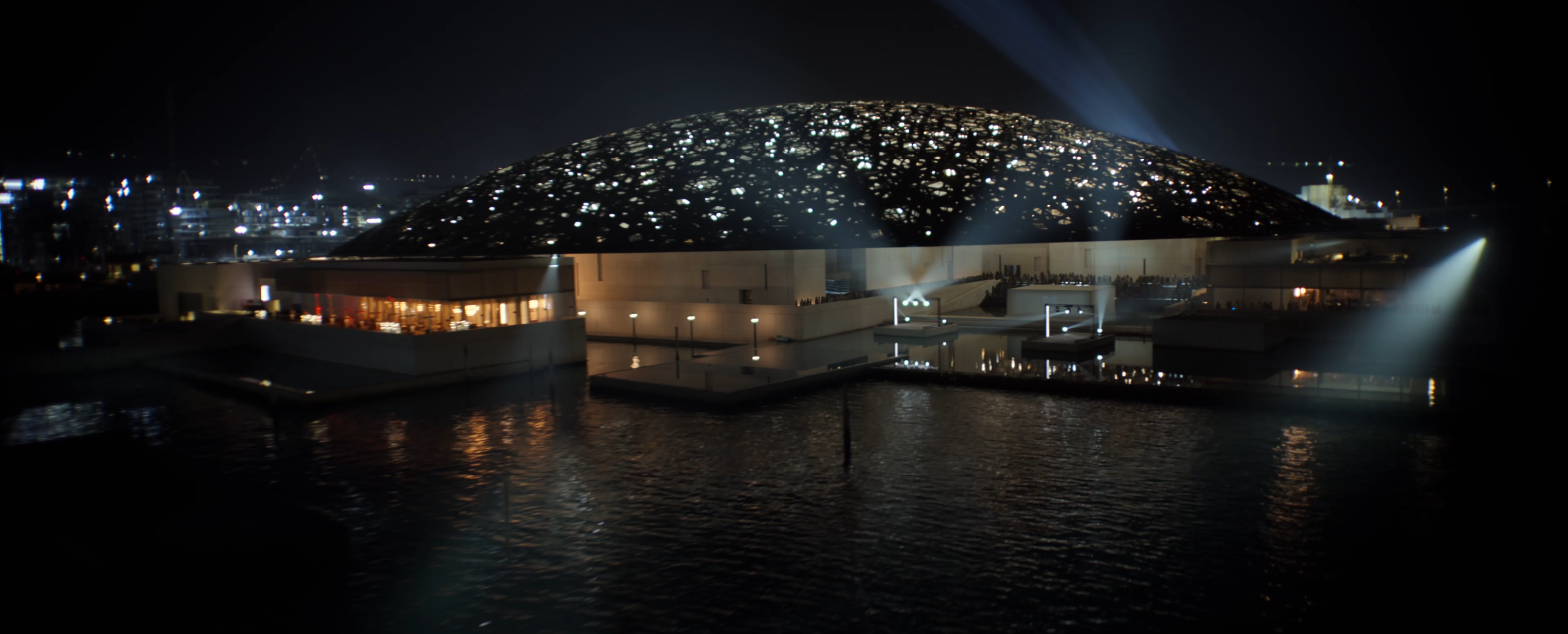 พิธภัณฑ์สากลแห่งแรกในโลกอาหรับและสิ่งมหัศจรรย์ทางสถาปัตยกรรมสมัยใหม่ ลอยอยู่บนน้ำใต้โดมโลหะอันเป็นเอกลักษณ์ ซึ่งเป็นเวทีที่สมบูรณ์แบบให้กับเหล่า “จตุรอาชา” และ “อาชญากลรุ่นใหม่” ในฉากไคลแมกซ์ของภาพยนตร์