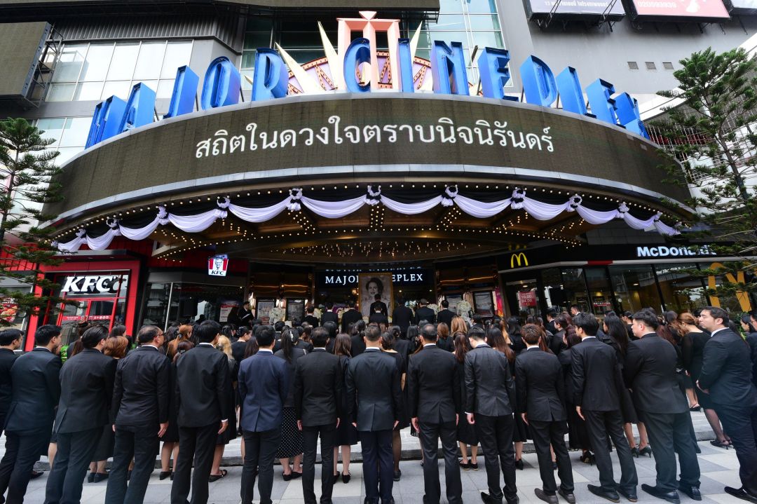 บริษัท เมเจอร์ ซีนีเพล็กซ์ กรุ้ป จำกัด (มหาชน) นำโดย วิชา พูลวรลักษณ์ ประธานเจ้าหน้าที่บริหาร พร้อมด้วย วิศรุต พูลวรลักษณ์ ตลอดจนคณะผู้บริหารและตัวแทนพนักงาน ในเครือ เมเจอร์ ซีนีเพล็กซ์ กรุ้ป ร่วมประกอบพิธีแสดงความอาลัยถวายแด่ สมเด็จพระนางเจ้าสิริกิติ์ พระบรมราชินีนาถ พระบรมราชชนนีพันปีหลวง ด้วยความสำนึกใน พระมหากรุณาธิคุณอันหาที่สุดมิได้ ณ บริเวณด้านหน้าอาคาร เมเจอร์ ซีนีเพล็กซ์ รัชโยธิน