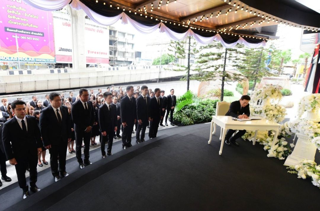บรรยากาศในพิธีดำเนินไปด้วยความสงบ คณะผู้บริหารและพนักงานได้ร่วมกล่าวคำแสดงความอาลัยถวายสักการะหน้าพระฉายาลักษณ์ ยืนสงบนิ่ง 93 วินาที จากนั้นได้ร่วมลงนามแสดงความอาลัยแด่พระองค์ท่านเป็นลำดับ