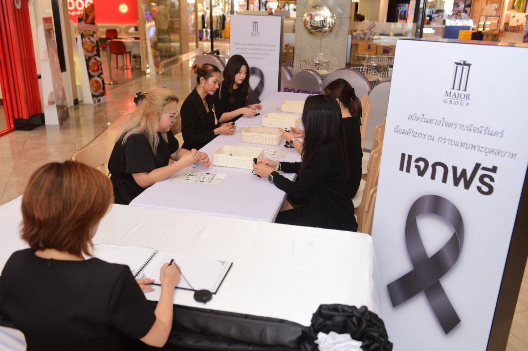 โอกาสนี้ เมเจอร์ ซีนีเพล็กซ์ กรุ้ป ได้จัดตั้งโต๊ะหมู่ประดิษฐานพระฉายาลักษณ์บริเวณด้านหน้าอาคาร เพื่อเปิดโอกาสให้พนักงาน ผู้ประกอบการร้านค้า และประชาชนทั่วไป ได้ร่วมลงนามแสดงความอาลัยถวายแด่พระองค์ท่าน และร่วมจัดทำ “ริบบิ้นไว้อาลัย” เพื่อแจกจ่ายแก่ประชาชนคนไทยในการแสดงความอาลัยและน้อมรำลึกถึงพระมหากรุณาธิคุณอันยิ่งใหญ่ของสมเด็จพระพันปีหลวง