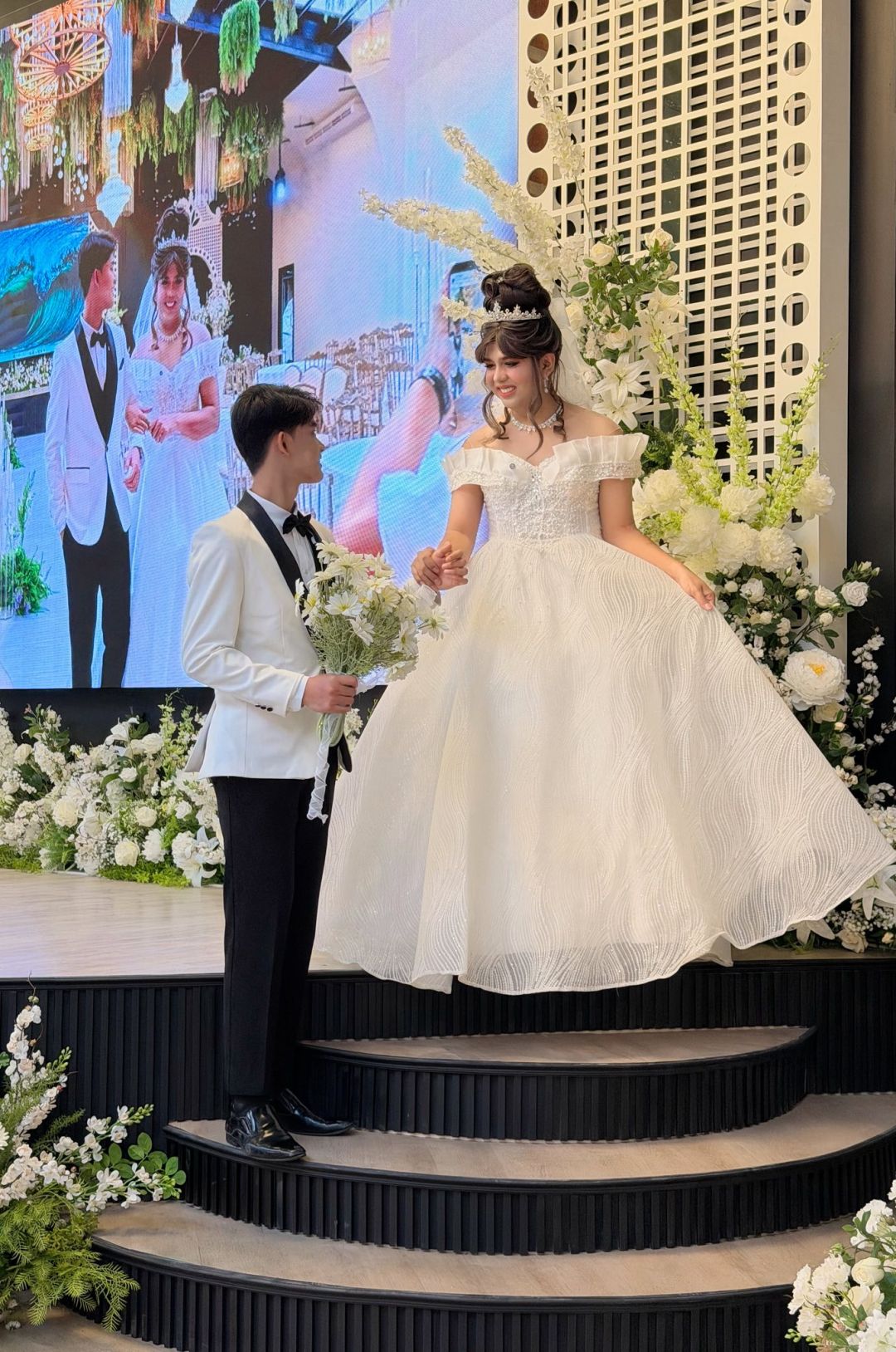 ภาพดังกล่าวเป็นภาพที่ทั้งคู่อยู่ในชุด “เจ้าบ่าว-เจ้าสาว” ที่ถูกแต่งแต้มอย่างสวยงาม ท่ามกลางบรรยากาศที่ถูกจัดอย่างอลังการและดูคล้ายกับพิธีวิวาห์หวานชื่น โดยเฉพาะอย่างยิ่งแคปชั่นที่ แพรรี่ ไพรวัลย์ ได้ระบุไว้ในโพสต์ว่า “ขออภัยที่ไม่ได้ เรียนเชิญทุกท่านนะคะ”