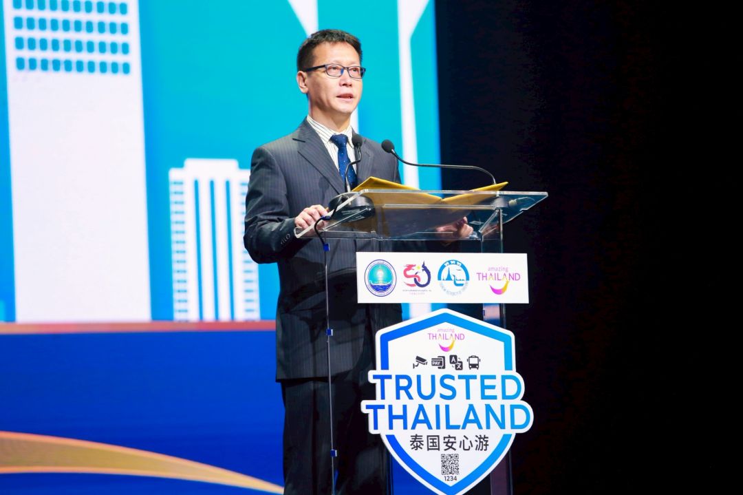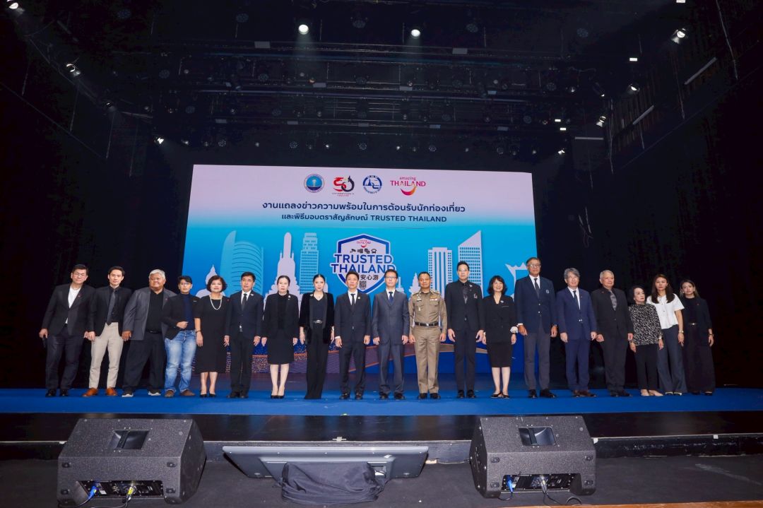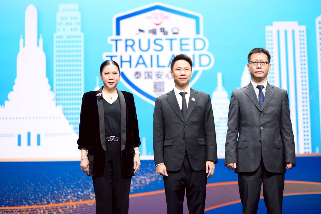 อรรถกร ศิริลัทธยากร รัฐมนตรีว่าการกระทรวงการท่องเที่ยวและกีฬา หยาง เสี่ยวหลง ที่ปรึกษาแผนกวัฒนธรรม สถานเอกอัครราชทูตสาธารณรัฐประชาชนจีนประจำประเทศไทย และฐาปนีย์ เกียรติไพบูลย์ ผู้ว่าการการท่องเที่ยวแห่งประเทศไทย (ททท.) ผนึกกำลังหน่วยงานพันธมิตร ร่วมแถลงข่าวความพร้อมต้อนรับนักท่องเที่ยวและมอบตราสัญลักษณ์ “Trusted Thailand” ให้กับสถานประกอบการที่เข้าร่วมโครงการ เพื่อรับรองมาตรฐานคุณภาพด้านความปลอดภัยและสร้างความเชื่อมั่นในการเดินทางให้กับนักท่องเที่ยวทั่วโลก