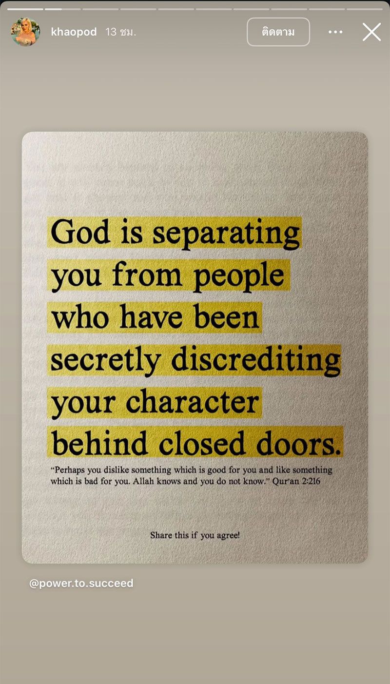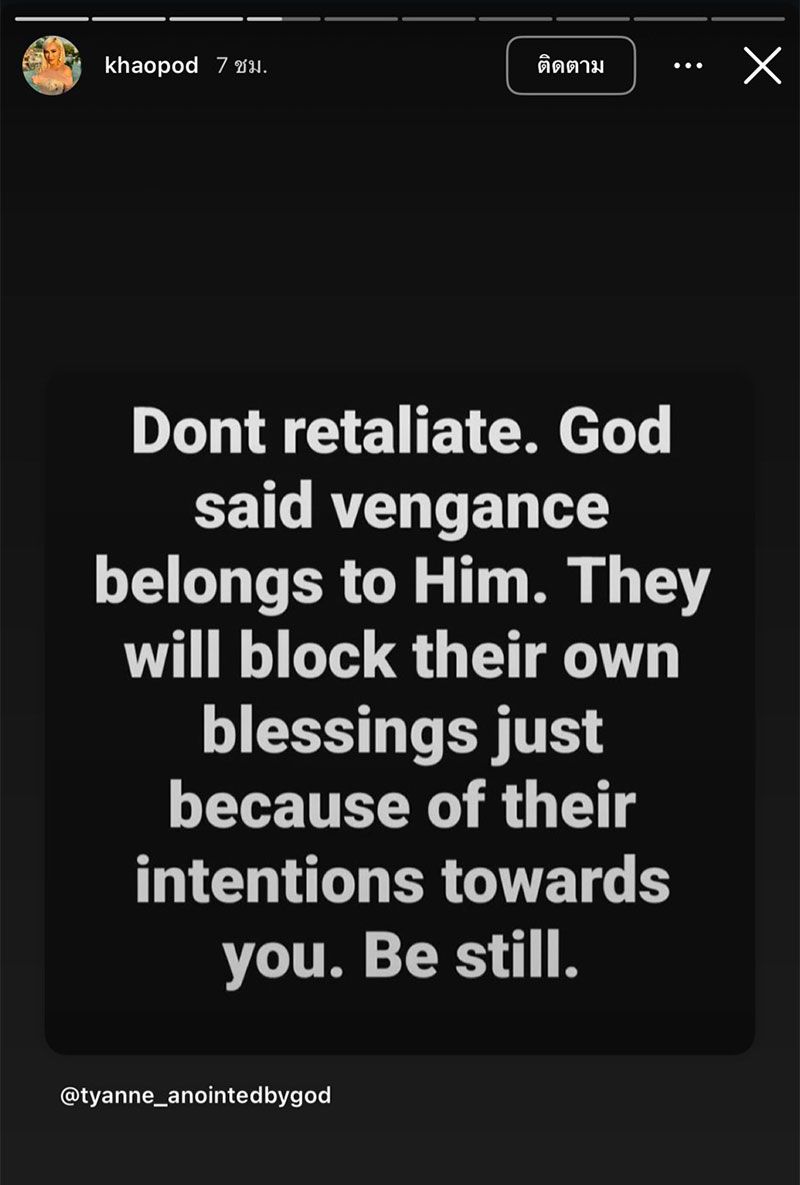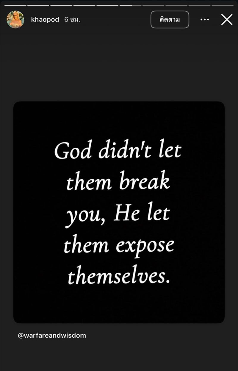 "God didn't let them break you, He let them expose themselves." (พระเจ้าไม่ปล่อยให้คนเหล่านั้นทำลายคุณ แต่จะให้พวกเขาเผยตัวตนออกมา)
